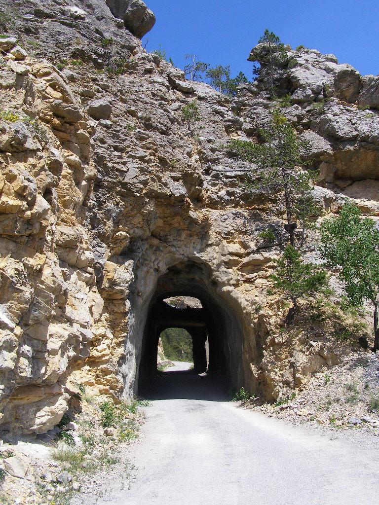 1) per non tornare dal percorso di salita, si può imboccare la strada asfaltata con tratti molto sconnessi (sembra più che altro una sterrata) che scende sul versante sud verso la strada del Col d’Izoard. Lunghissima discesa, con il passaggio in alcune suggestive gallerie scavate nella roccia, fino a sfociare nella strada dell’Izoard che riporta a Briancon. Ultima risalita di un paio di km per tornare al parcheggio dove si è lasciata l’auto.