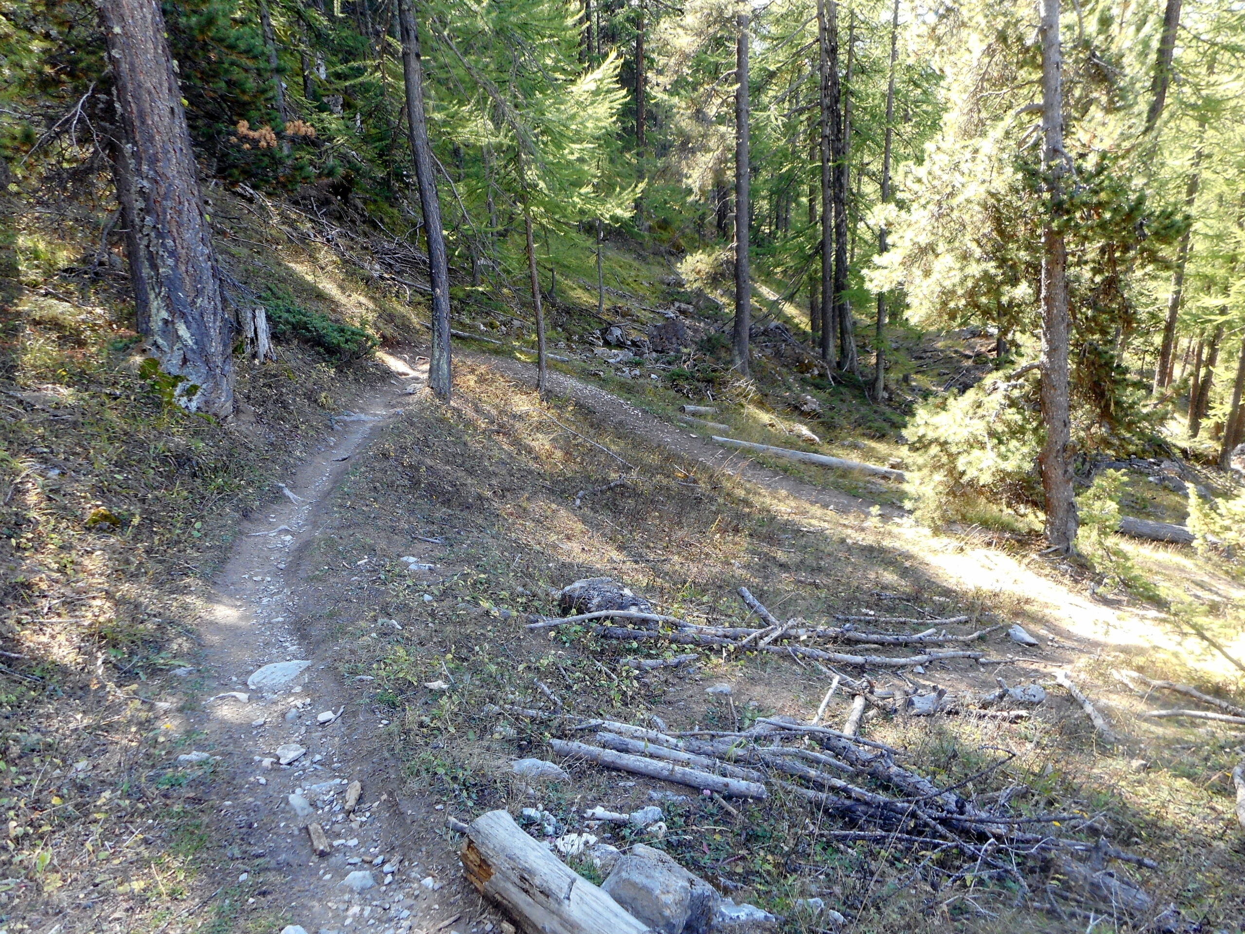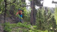 2)Single track de l’Infernet: Dal grande abbeveratoio de la Cochette si prende l’esile traccia erbosa (cartelli rossi VTT) che entra nel bosco con una serie di tornantini, alcuni ripidi, con fondo a tratti liscio a tratti irregolare per radici. si arriva a Fontenil