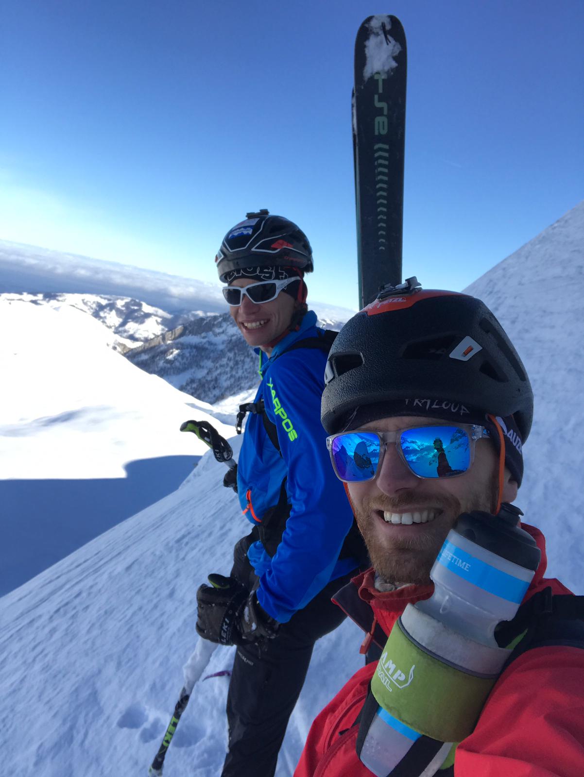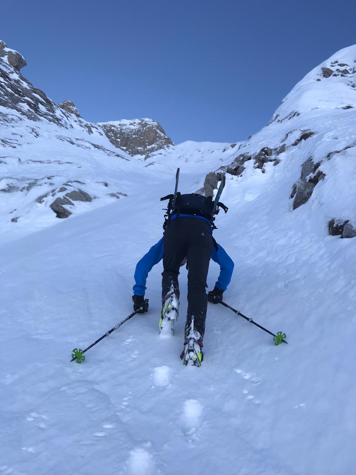 Nulla da aggiungere al commento di tommy89….condizioni perfette, powder fino alla vita, dura tracciare! Peccato x le rocce finali, non pensando che fossero così estreme avevamo una sola picca e ramponi in alluminio, per cui dietrofront, la discesa sarebbe stata molto hard. Comunque non bisogna farsi ingannare dal grado (per me ci stava 5.2 tranquillamente) itinerario severo e complesso molto expo nel traverso, da non sottovalutare. Non male come inizio di stagione: ignoranza,arroganza e takenza. Un’idea del giovane portato a spasso dal vecchio. Supercombo con direttissima nord del mondolè e ippopotami. Grande ripido con tommy.