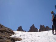 Lasciata a destra Fonte Rionne (1830 mt) si risale il canalone, inizialmente ampio ed agevole, fino ad arrivare intorno a quota 1965 mt dove piega a destra e si restringe sovrastato da guglie rocciose.