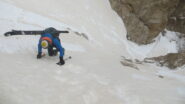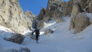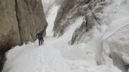 Si risale ora il ramo destro (ramo sx orografico della Y),ripido e stretto, con pendenze che gradualmente aumentano fino ad arrivare intorno ai 35°-40°.