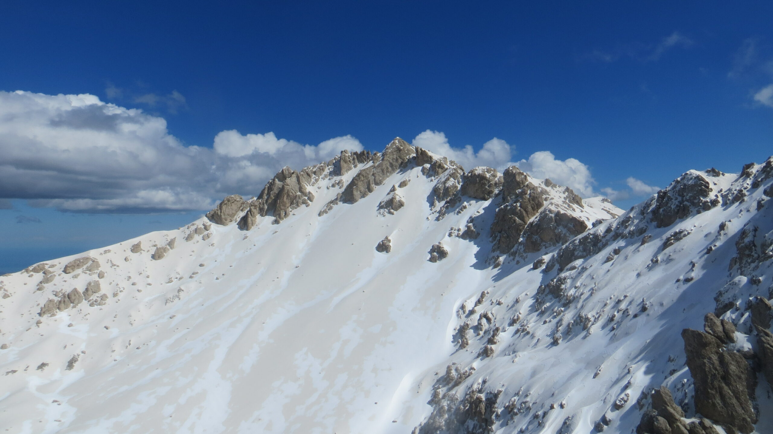 Il versante meridionale del Monte Prena è roccioso e tormentato da guglie, pinnacoli e alte pareti, e si presenta inciso da canaloni.