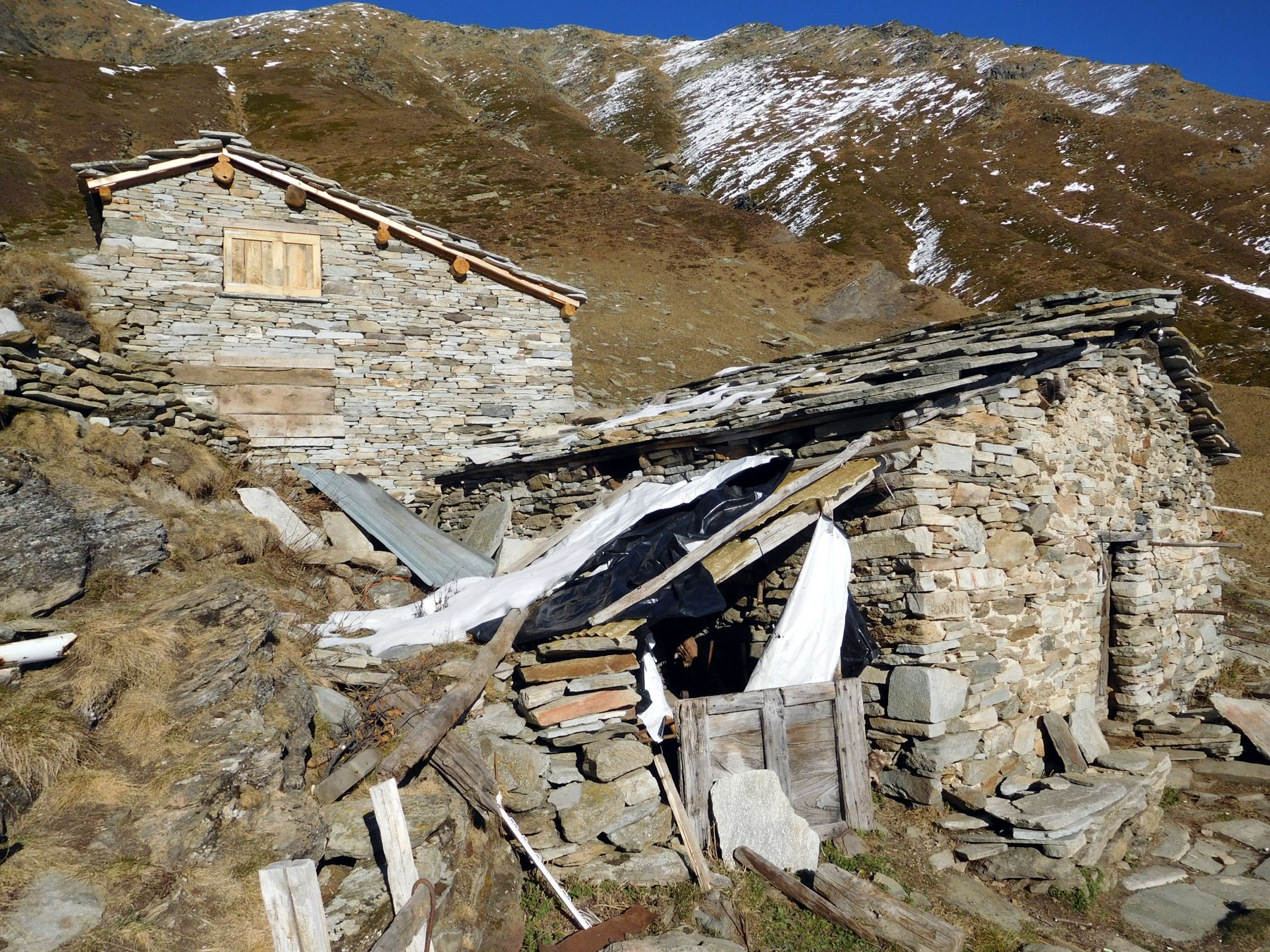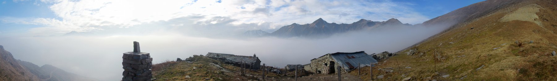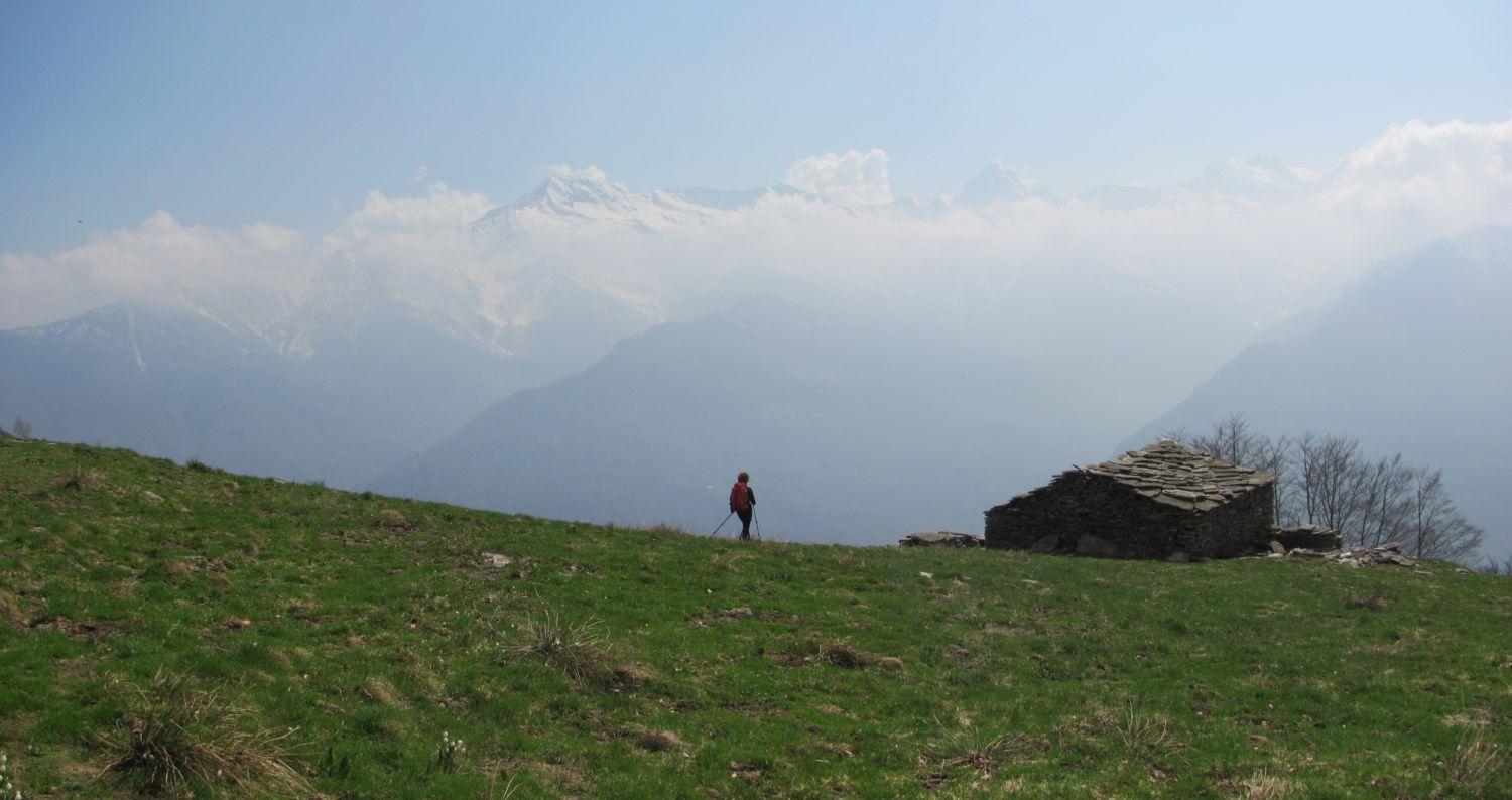 Ancora un lungo traverso, poi si scende di poco ad attraversare un ruscello per risalire e uscire sul poggio prativo dov’è posta la diroccata Alpe di Subiasco 1880 m.