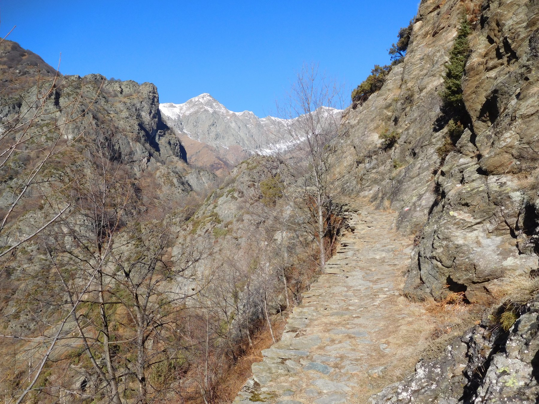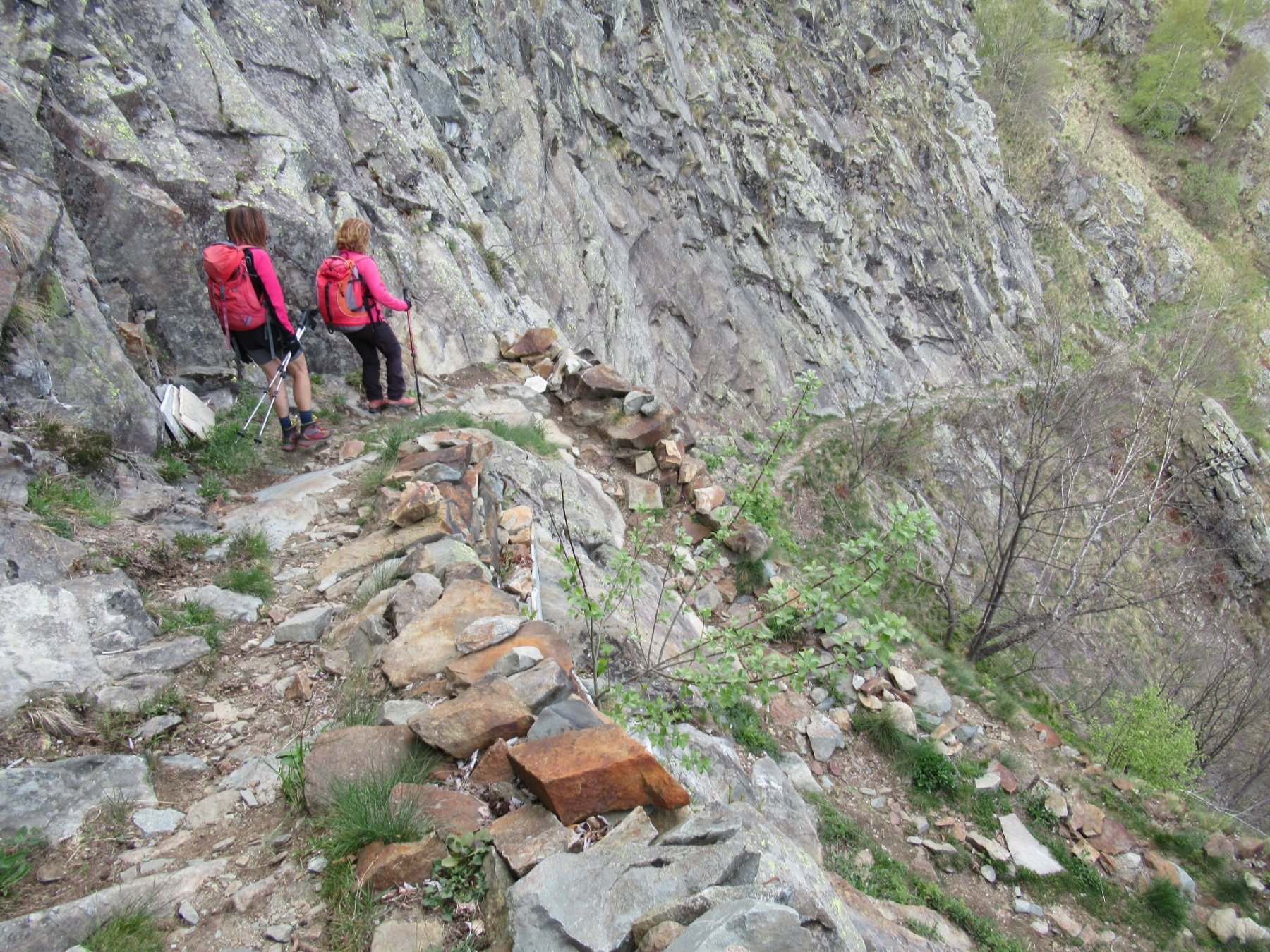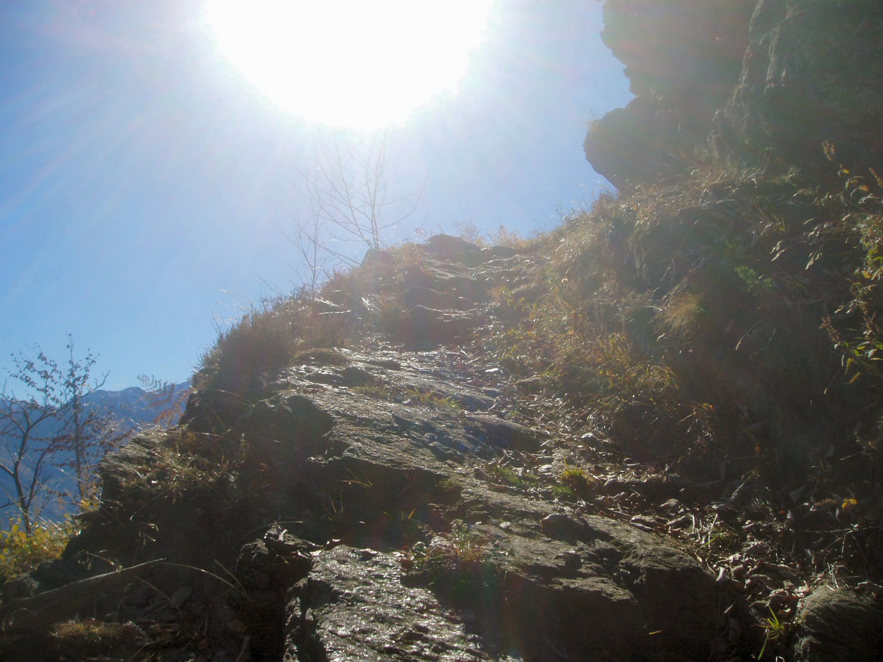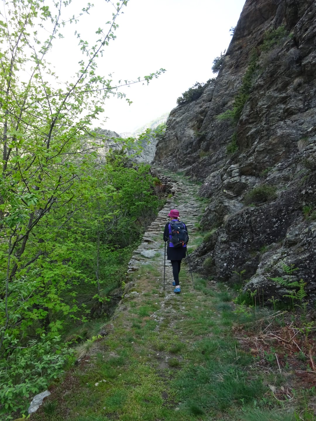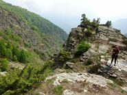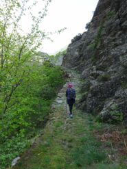 La mulattiera sale con moderata pendenza tagliando il fianco del pendio.