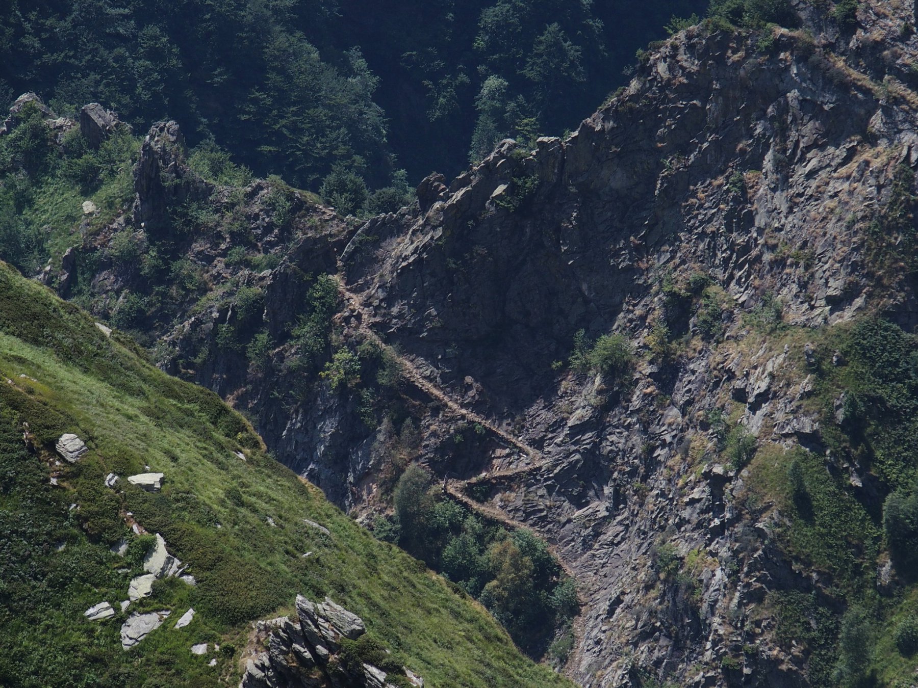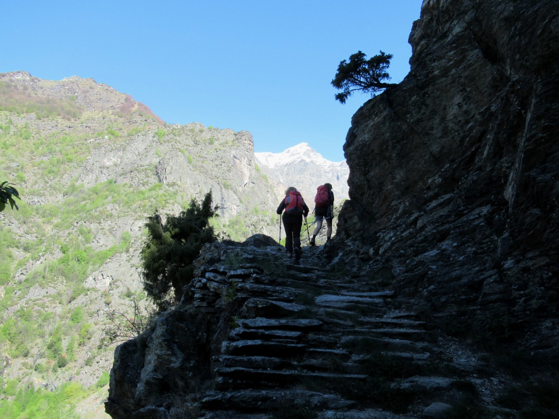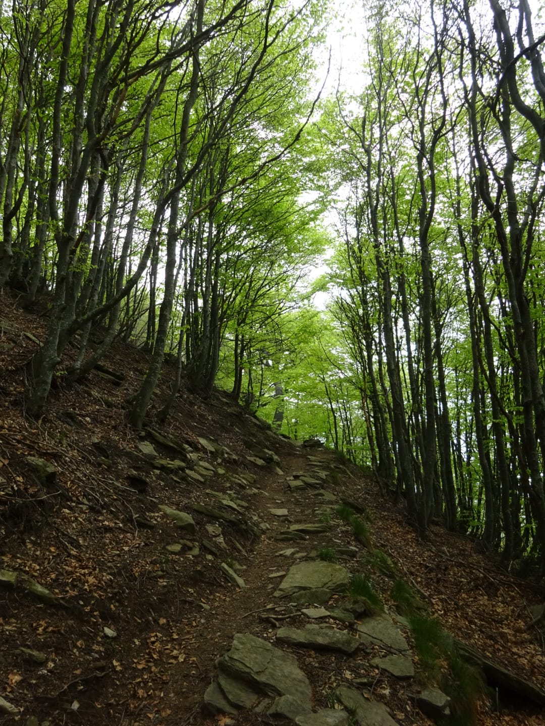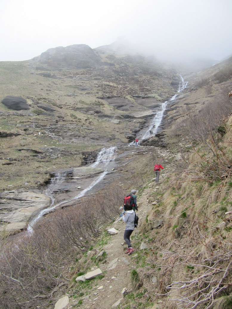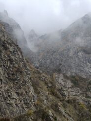 La mulattiera sale con moderata pendenza tagliando il fianco del pendio.