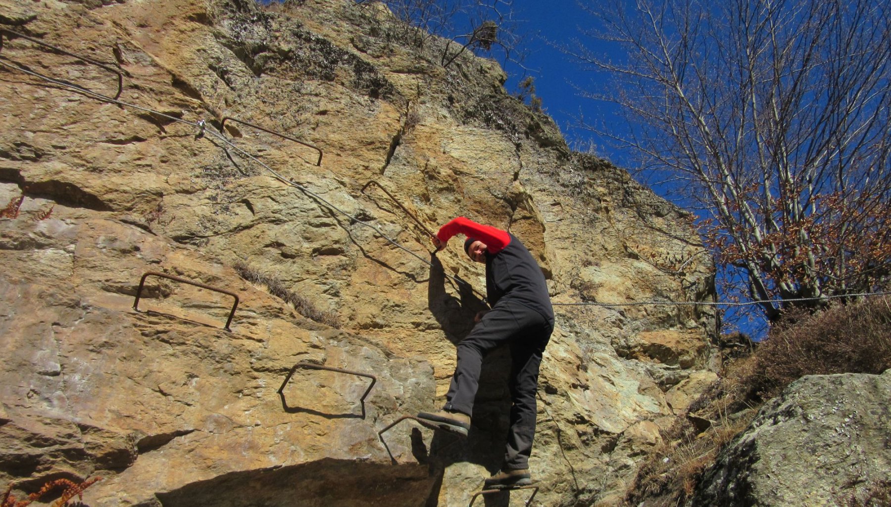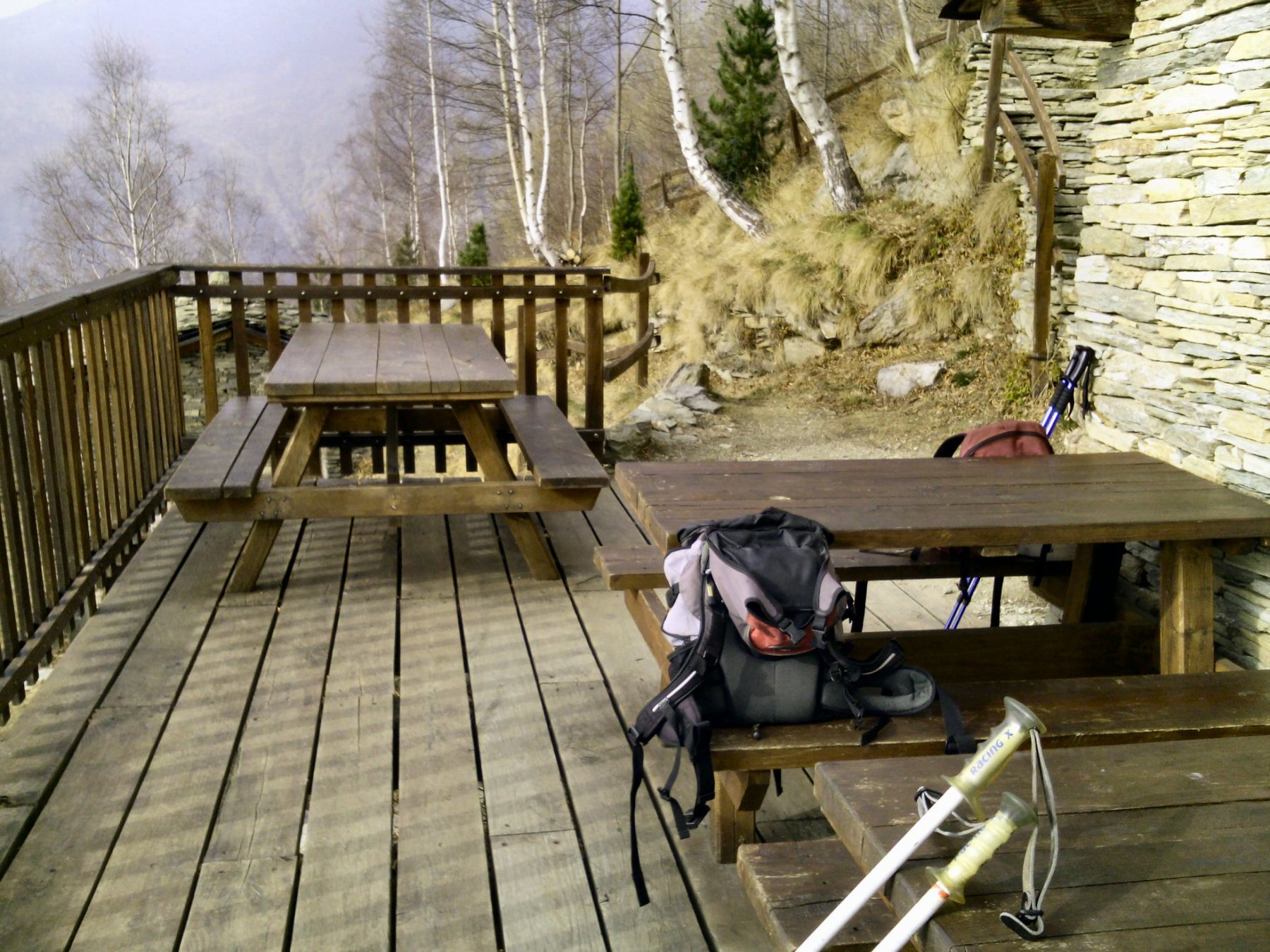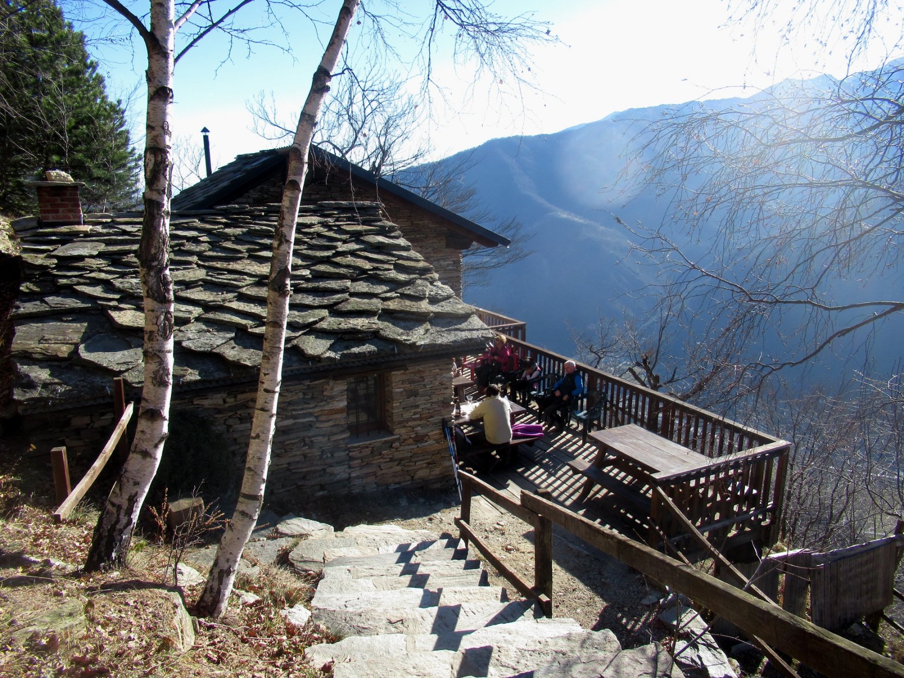 Per il ritorno, arrivare fino al rio con il ponte smontato; si procede ancora per pochi minuti e si trova a sinistra un bivio segnato con ometto e scritta“Rifugio Invincibili” La traccia sale ripidissima sino a superare un colletto, poi altrettanto ripidamente scende al successivo rio. Si prosegue quasi in piano pervenendo alla palestra di roccia di Lou Poli, caratteristico roccione a forma di mezzaluna. Da qui si prosegue su ottimo sentiero nel bosco di faggi, pervenendo ad un gruppo di case con numerose incisioni recanti le date di costruzione (1846 la più antica) e dopo poco si perviee a una sterrata. Si prende in discesa a destra e si raggiunge in poco tempo il Rifugio degli Invincibili. Da qui non resta che proseguire sulla sterrata, o, seguendo i segnali, tagliare a destra nel bosco fino al parcheggio.