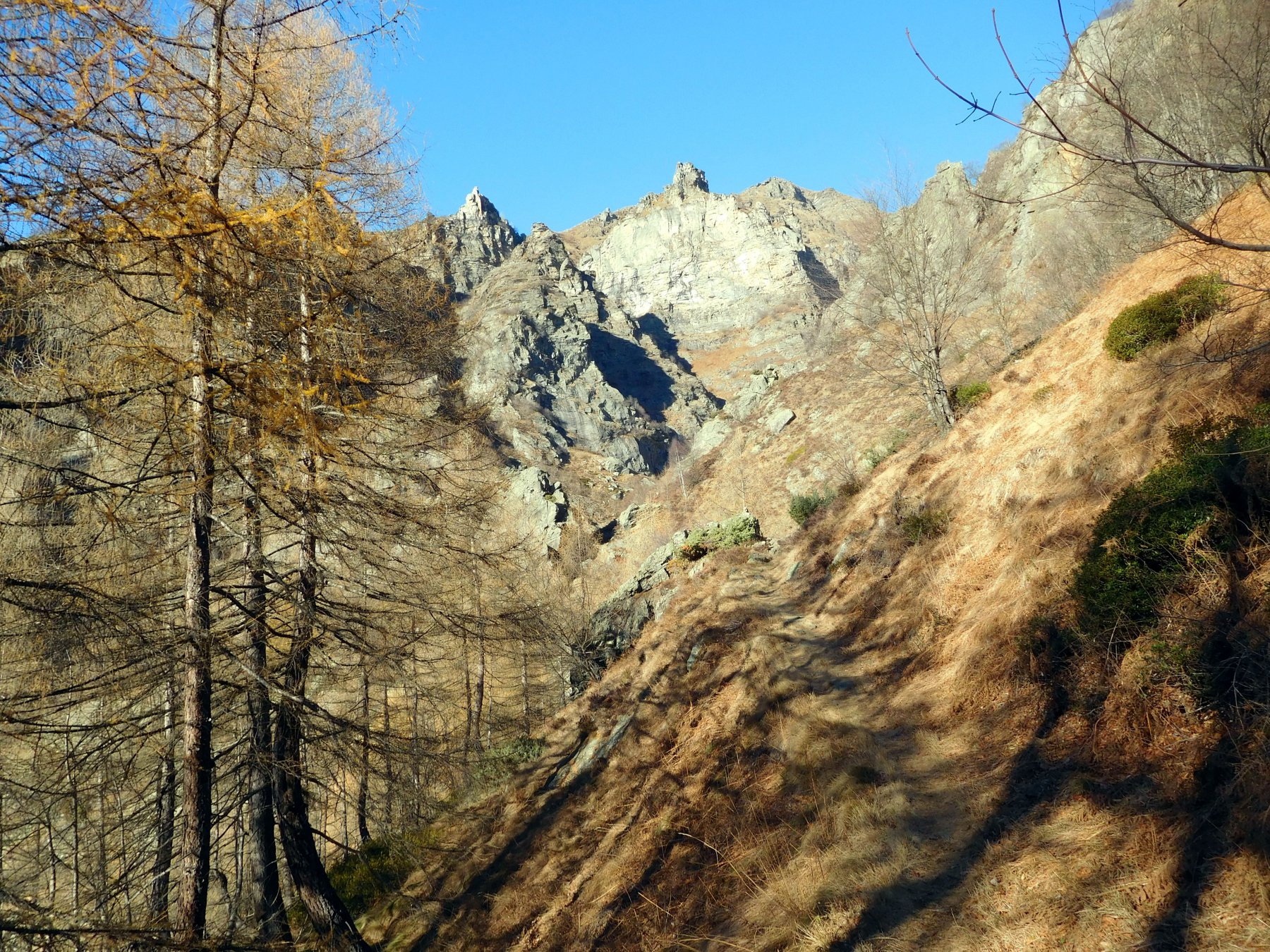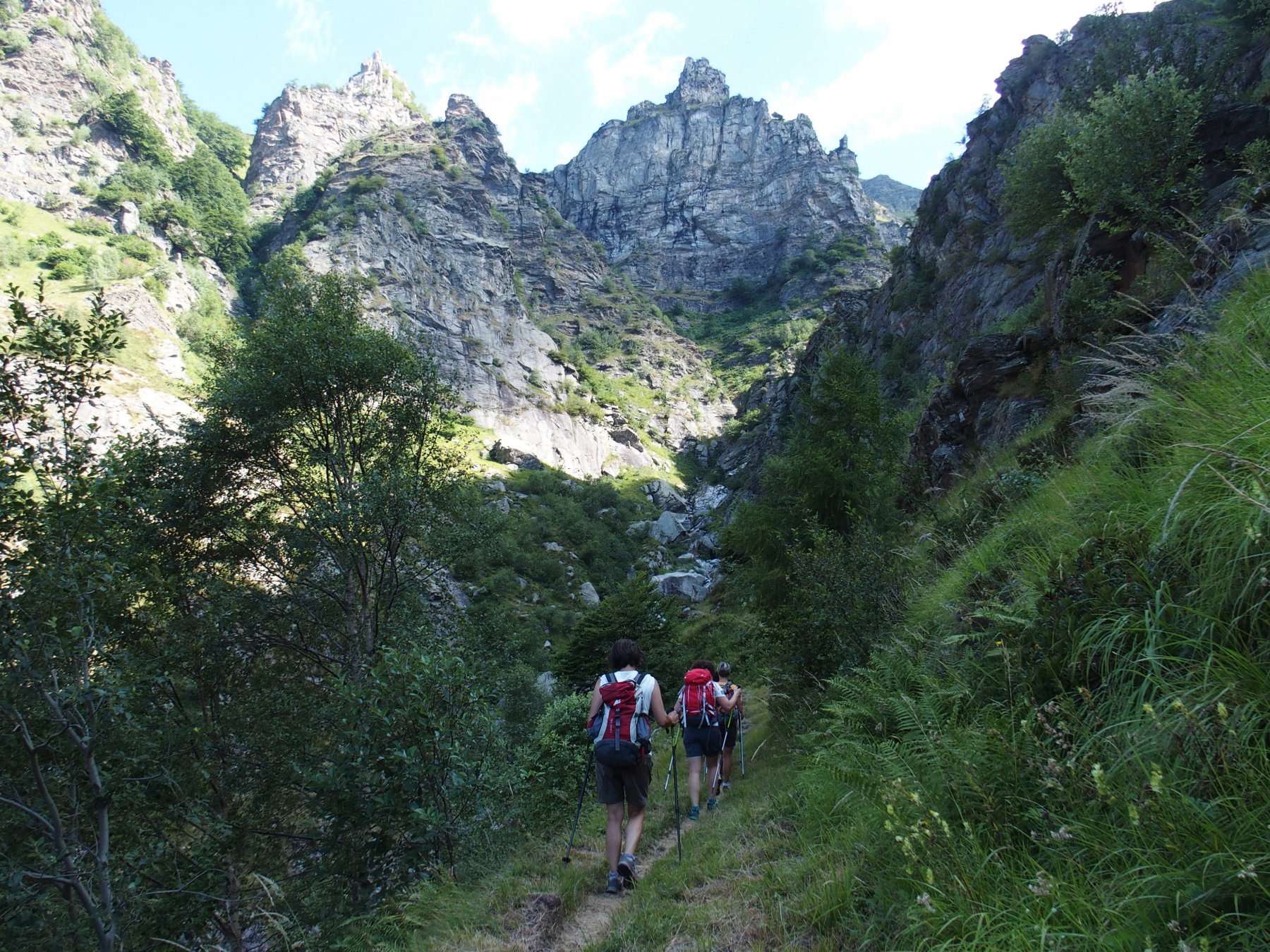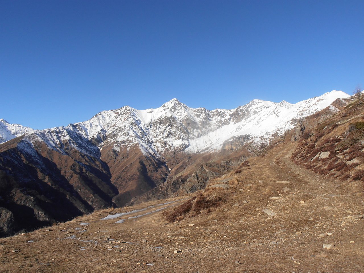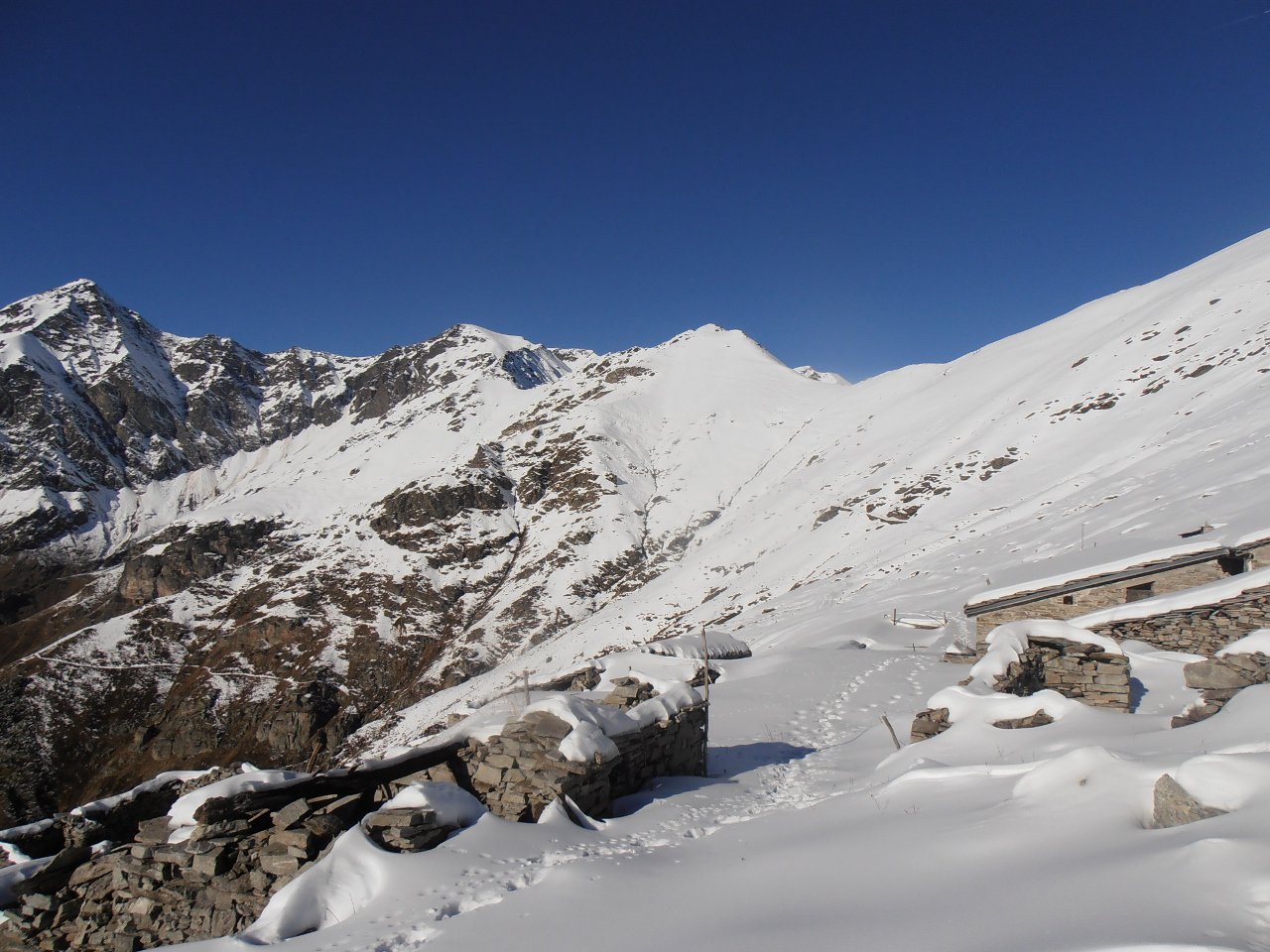 Si prosegue seguendo l’evidente traccia nell’erba a monte delle case verso il successivo superiore alpeggio di Subiasco. Il sentiero all’inizio sale moderatamente; poi più ripido si alza con alcune svolte, intervallate da lunghe diagonali che permettono di superare una barriera rocciosa, incuneandosi sempre più all’interno del vallone dominato dalla Punta Cornour.