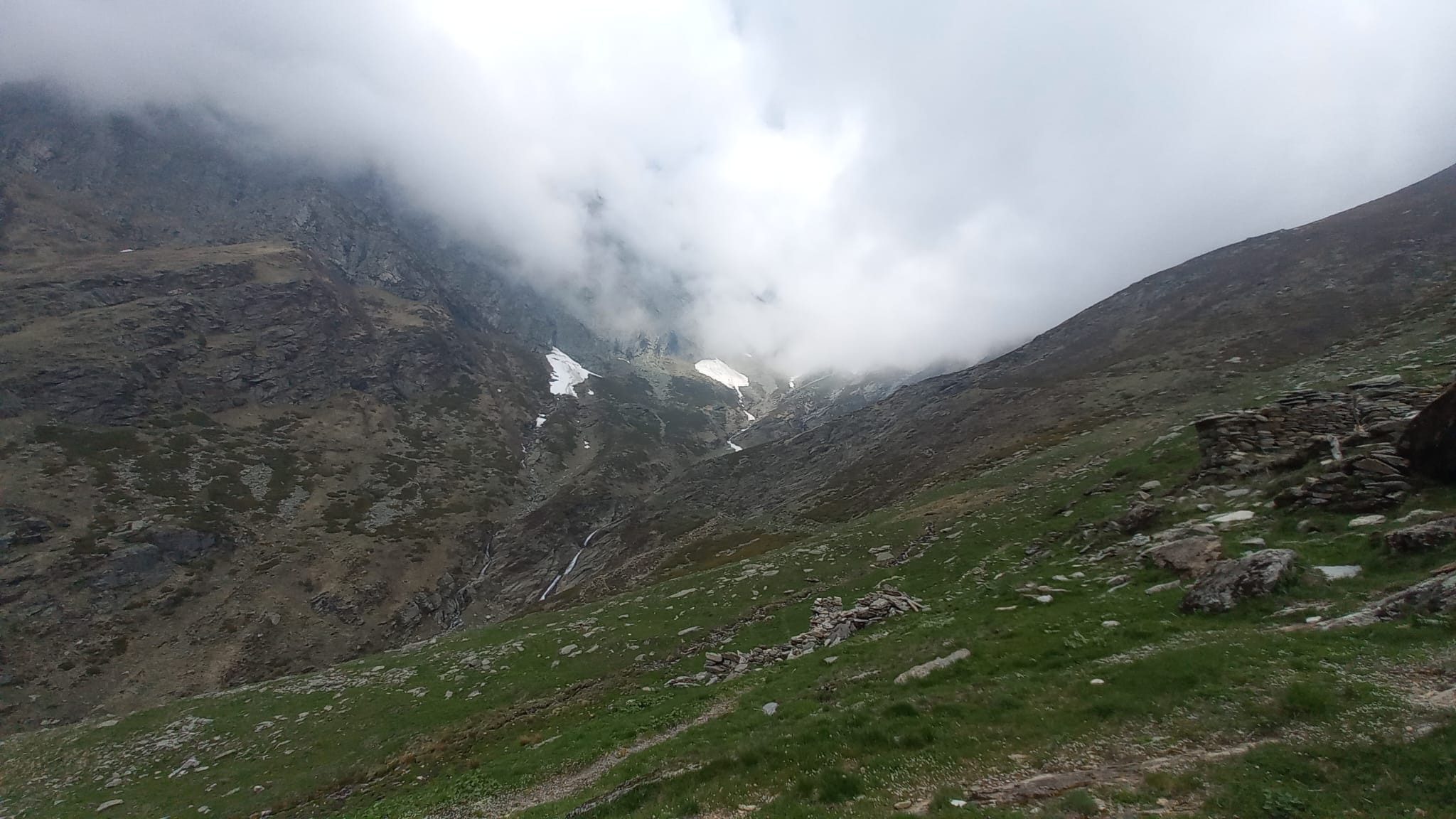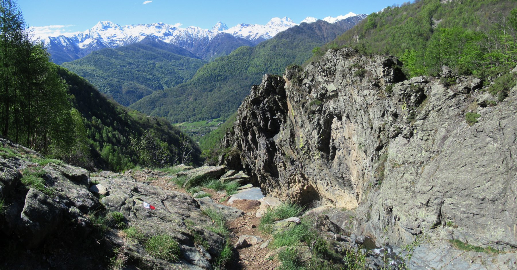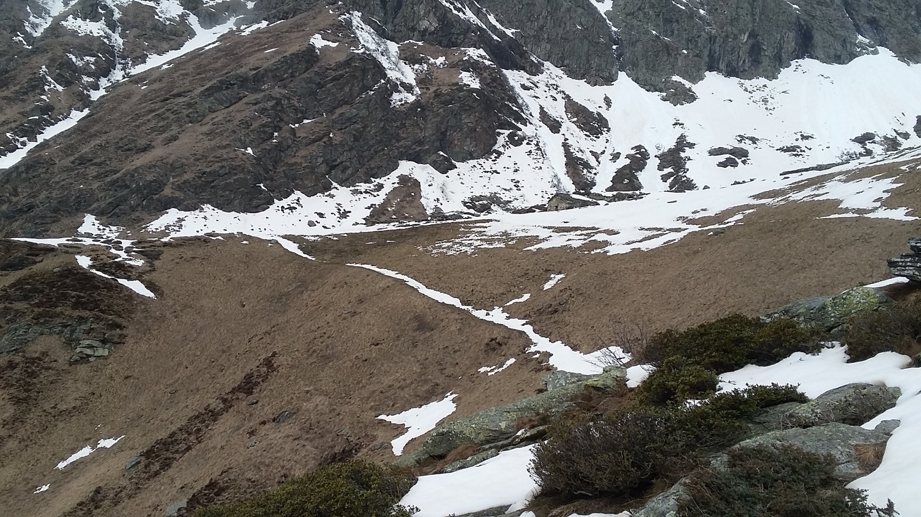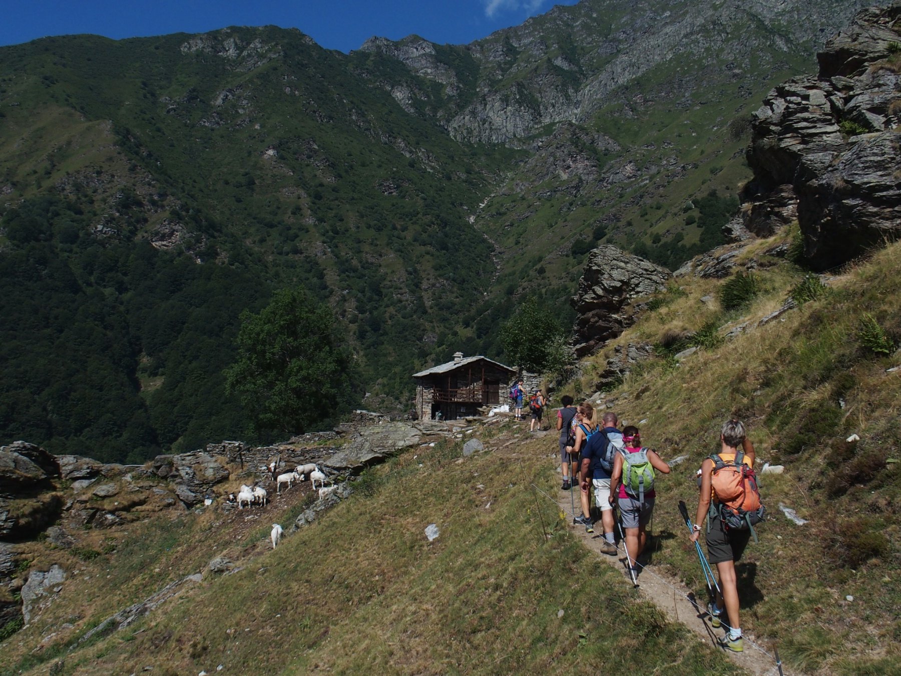Si prosegue seguendo l’evidente traccia nell’erba a monte delle case verso il successivo superiore alpeggio di Subiasco. Il sentiero all’inizio sale moderatamente; poi più ripido si alza con alcune svolte, intervallate da lunghe diagonali che permettono di superare una barriera rocciosa, incuneandosi sempre più all’interno del vallone dominato dalla Punta Cornour.