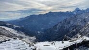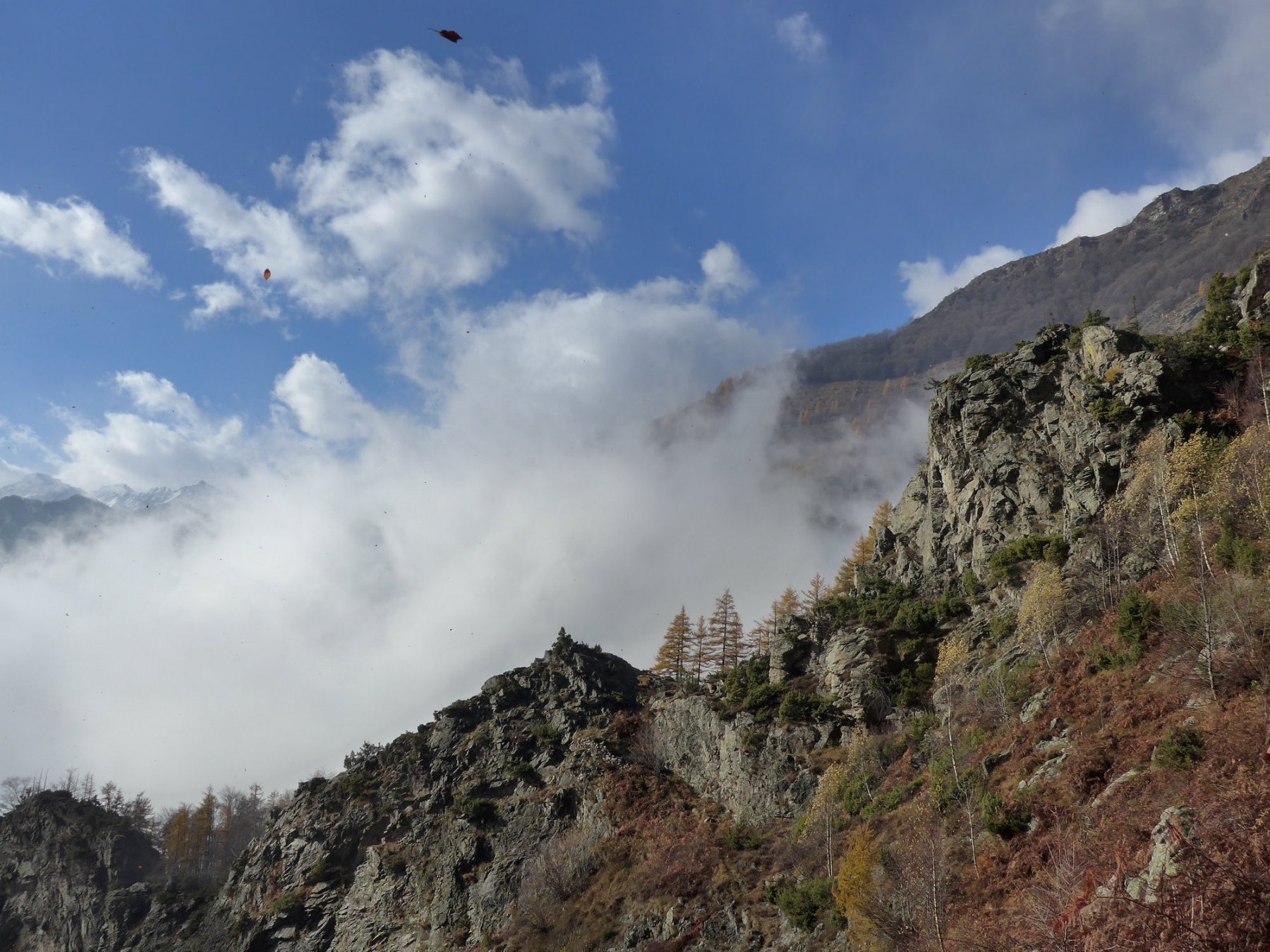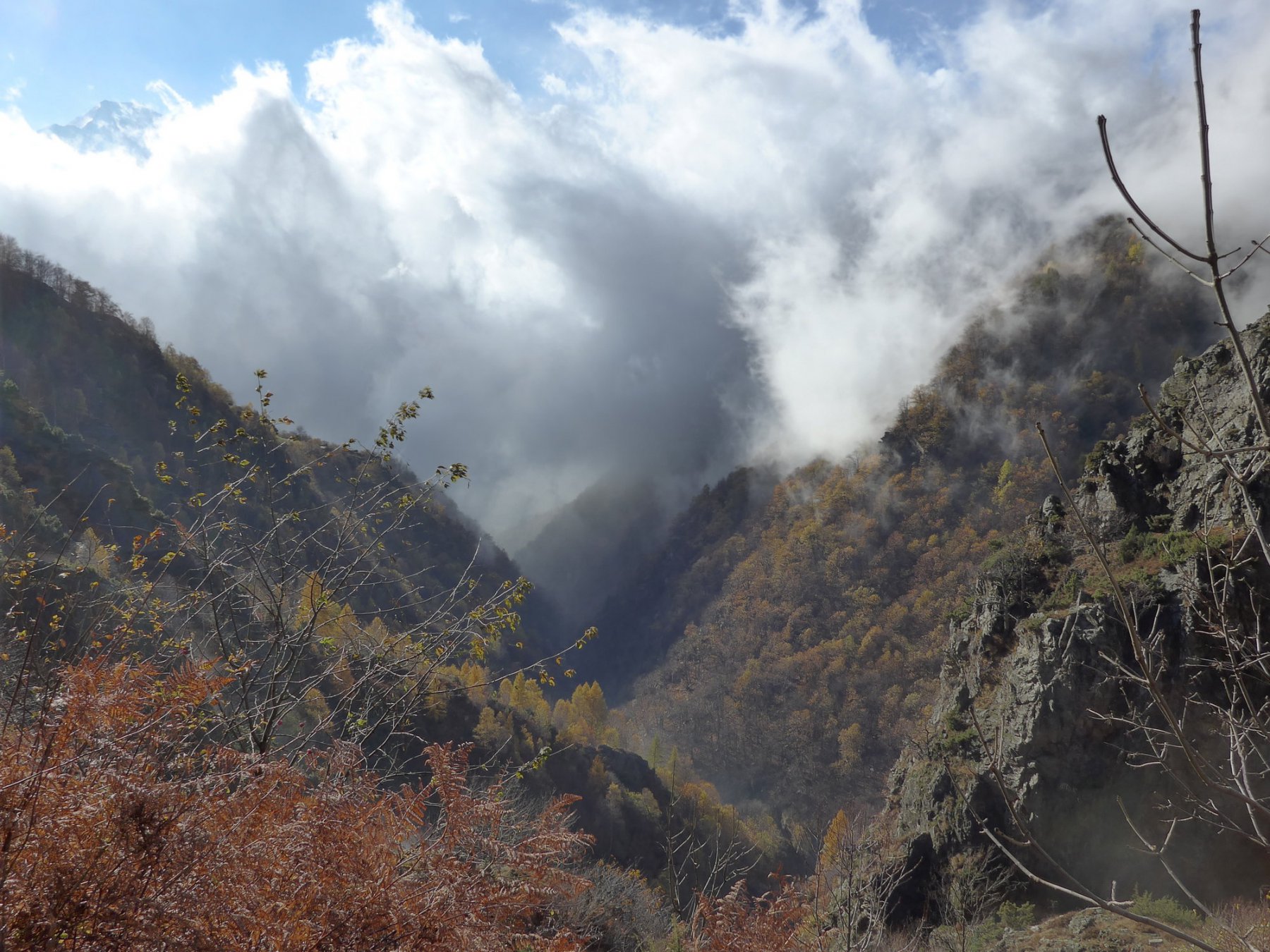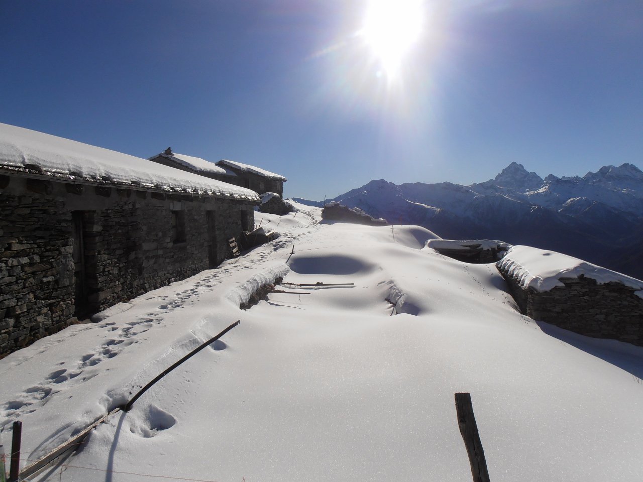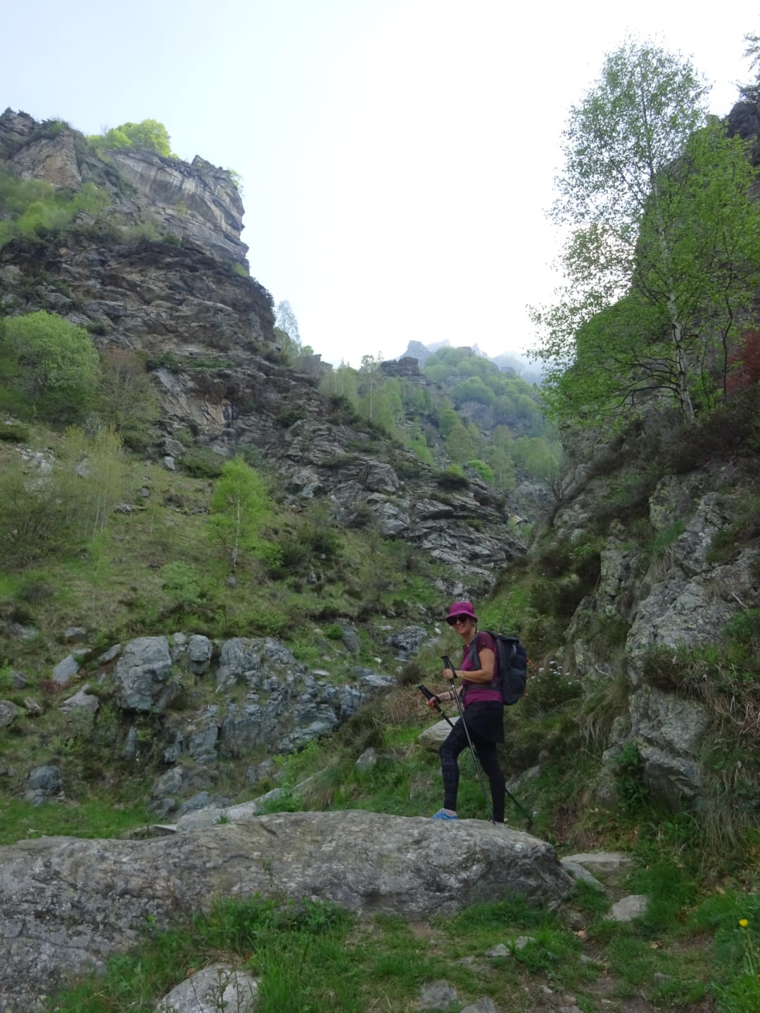 Si prosegue seguendo l’evidente traccia nell’erba a monte delle case verso il successivo superiore alpeggio di Subiasco. Il sentiero all’inizio sale moderatamente; poi più ripido si alza con alcune svolte, intervallate da lunghe diagonali che permettono di superare una barriera rocciosa, incuneandosi sempre più all’interno del vallone dominato dalla Punta Cornour.