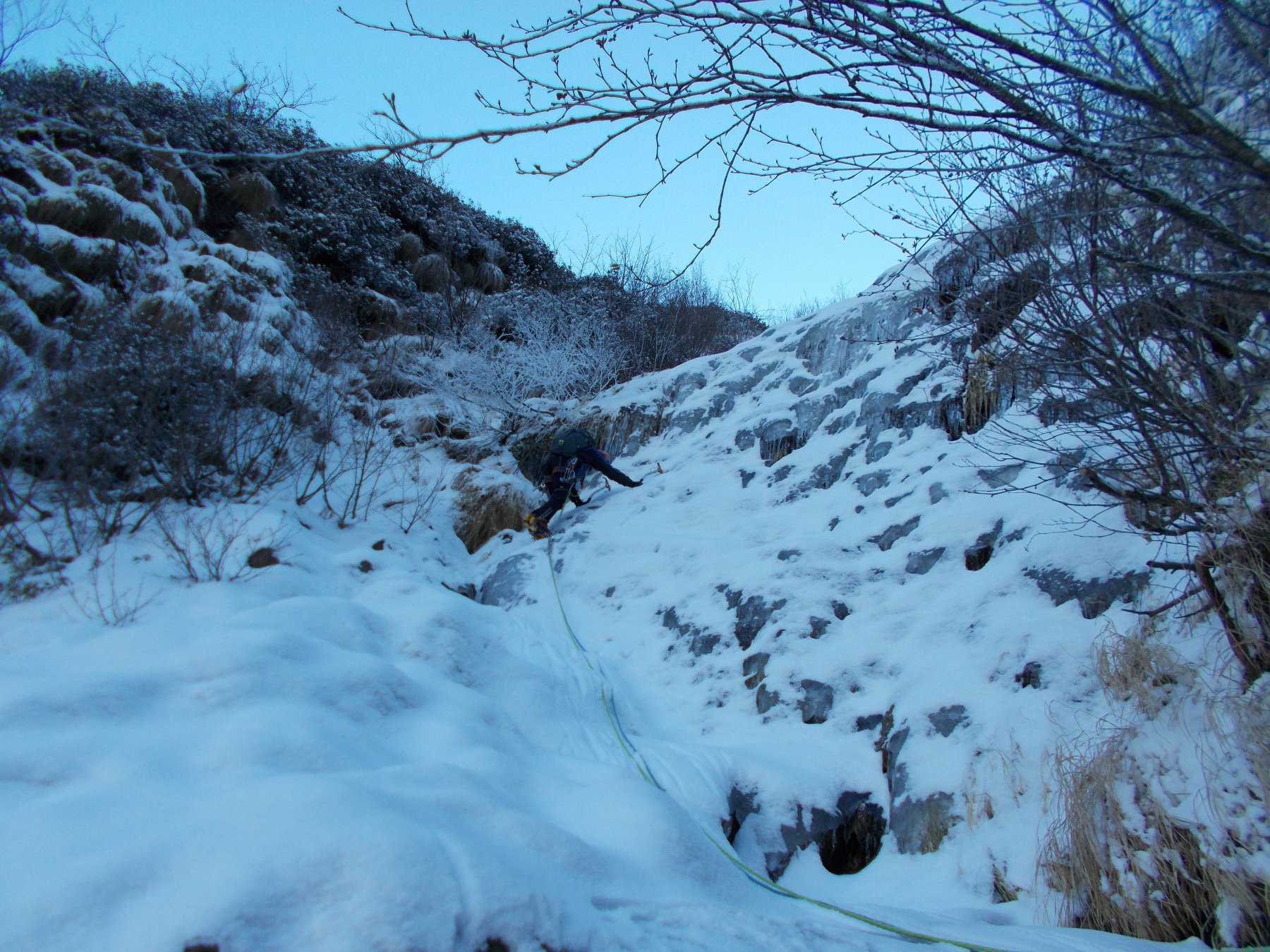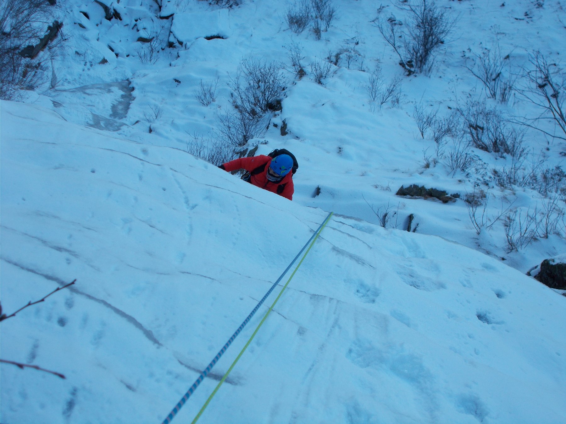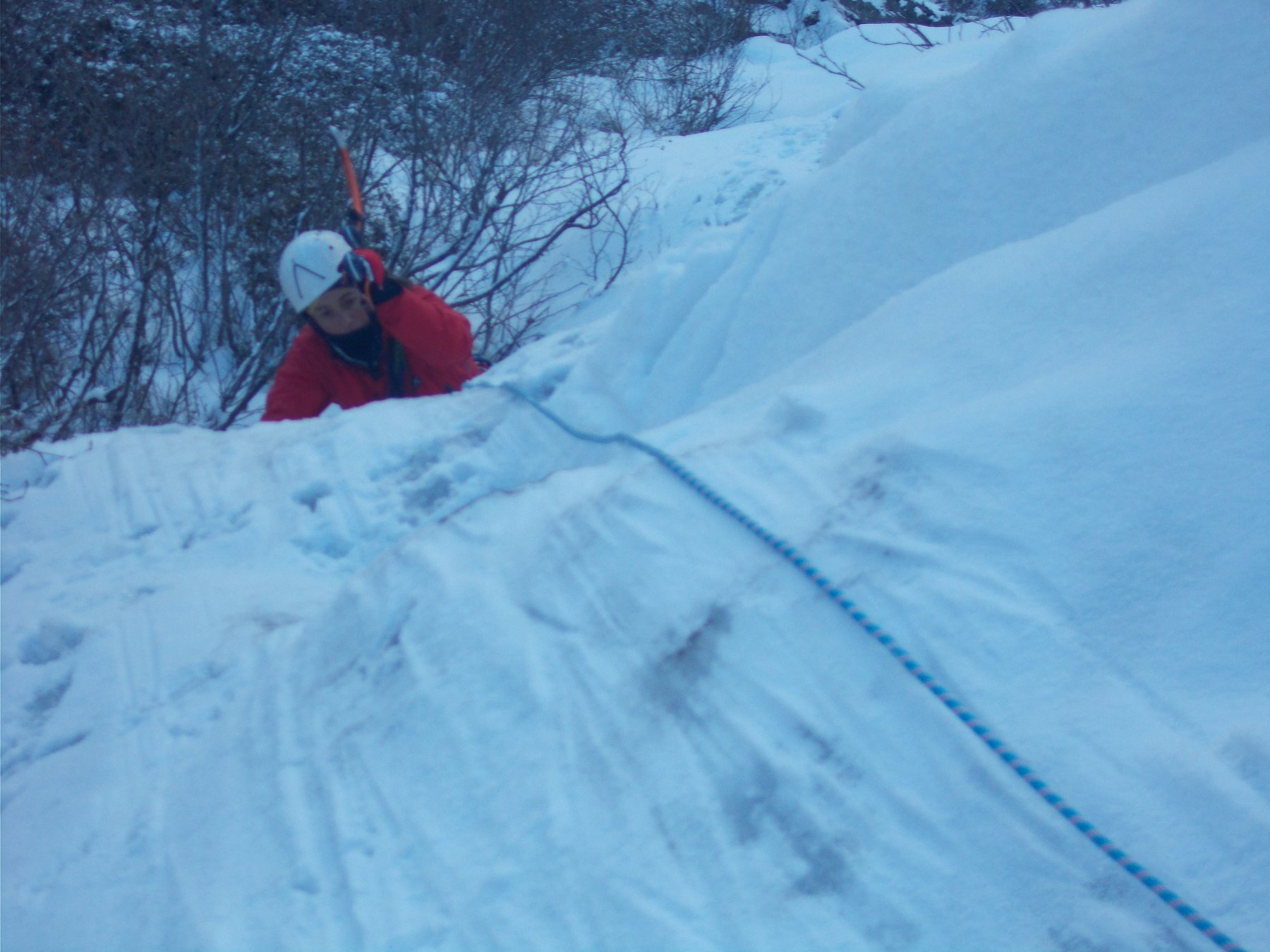 Cascata con pendenze poco sostenute 60° circa , con qualche muretto un poco più sostenuto.