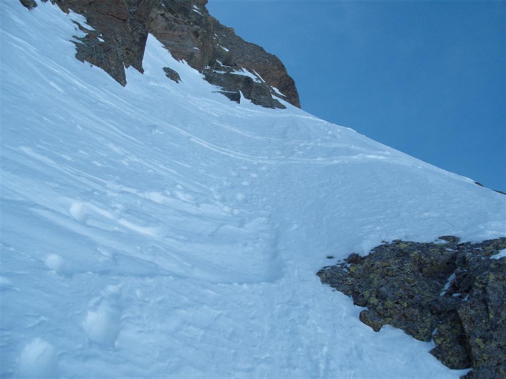 Variante di attacco sx facoltativa ( vedi foto) in discesa più ripida e esposta, necessità una breve levata di sci di un paio di metri ( delicato)