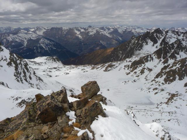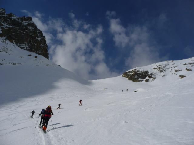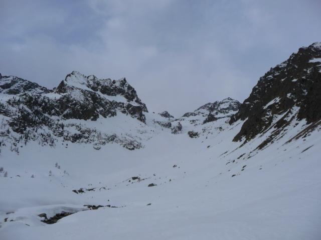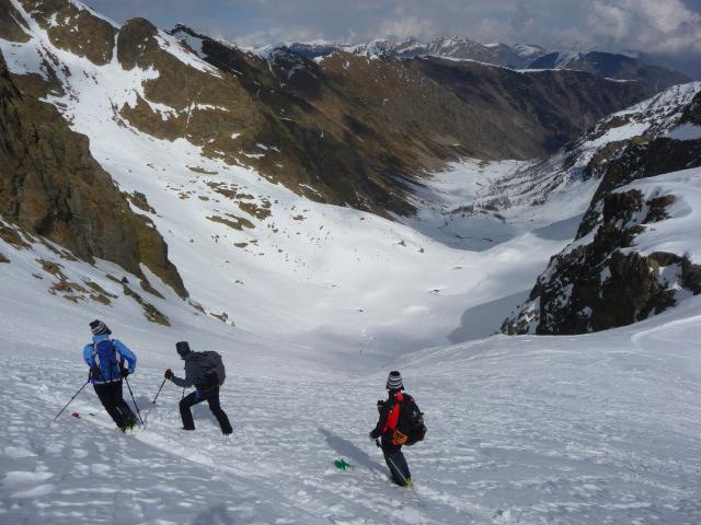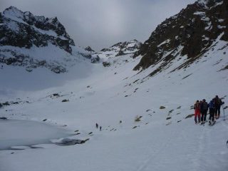 Meteo incerto e variabile per tutto il giorno, ma nel complesso buono, visto che non è mai mancata la visibilità. Lasciata l’auto dopo il ponte alto (prima attenzione al ghiaccio!) poi saliti con sci in spalla sulla strada fino al piano sopra la cascata. Volendo si può salire con sci dall’auto sulla sinistra del rio su neve e arbusti, ma noi abbiamo scelto la strada. Dal piano sopra la cascata abbiamo calzato gli sci. Saliti al Migliorero, poi al primo lago su neve trasformata. Nel canale per il lago superiore c’erano ancora tratti di farina. Arrivati al lago superiore abbiamo calzato i coltelli e siamo arrivati al colle con un po di vento e nuvole che correvano. Poco dopo il colle abbiamo lasciato gli sci e tramite facili roccette siamo saliti in cima. Vista spettacolare con sole che faceva spesso capolino. Foto di rito e iniziato a scendere su neve traformata fino al primo lago (scendendo) poi nel canale e fino al Migliorero abbiamo trovato tratti di bella farina e tratti di neve trasformata, comunque il tutto sempre molto ben sciabile. Dal rigugio in giù, scendendo sulla destra e “ravanando” un po, siamo arrivati all’auto con gli sci. Ottima gita e splendida compagnia! Oggi i mitici buzzi erano composti da: Elide, Paolo, Paolo, Paolo (io), Denis, Sergio, Walter… un mega saluto a tutti e.. alla prossima!!!