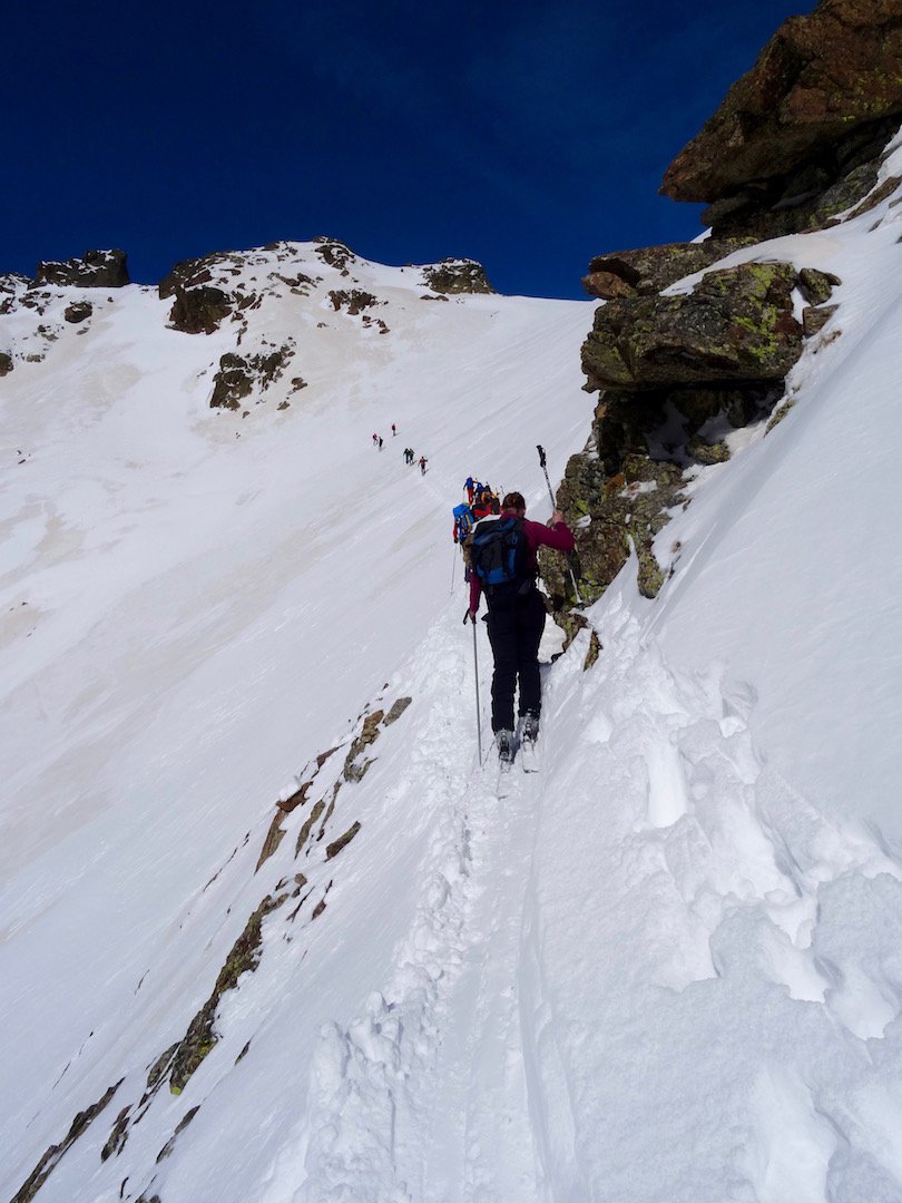 Discesa molto bella su neve polverosa anche se ogni tanto le placche di neve nuova scivolava via facilmente sullo strato trasformato di fondo ma senza dare problemi.
