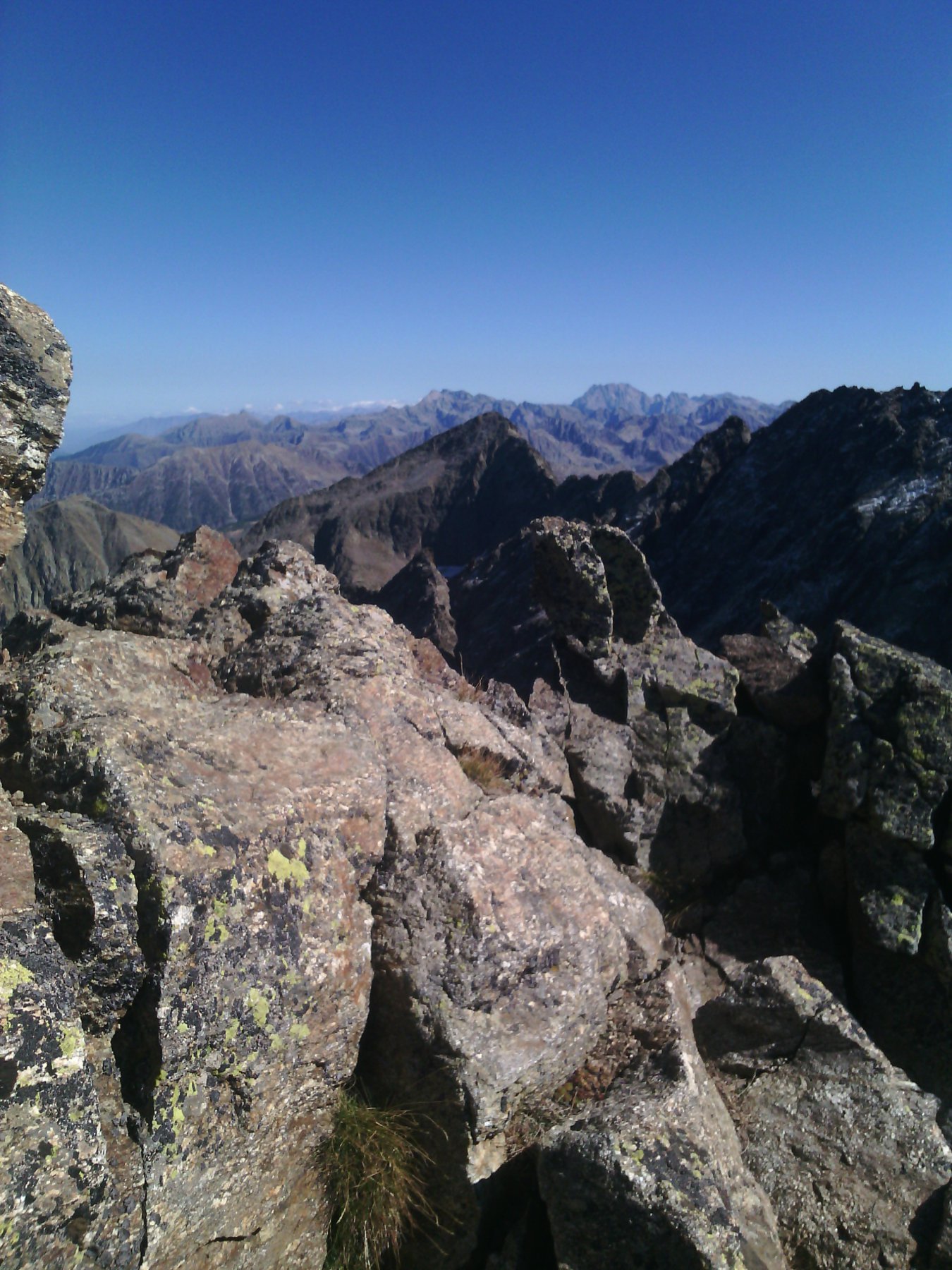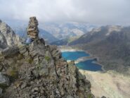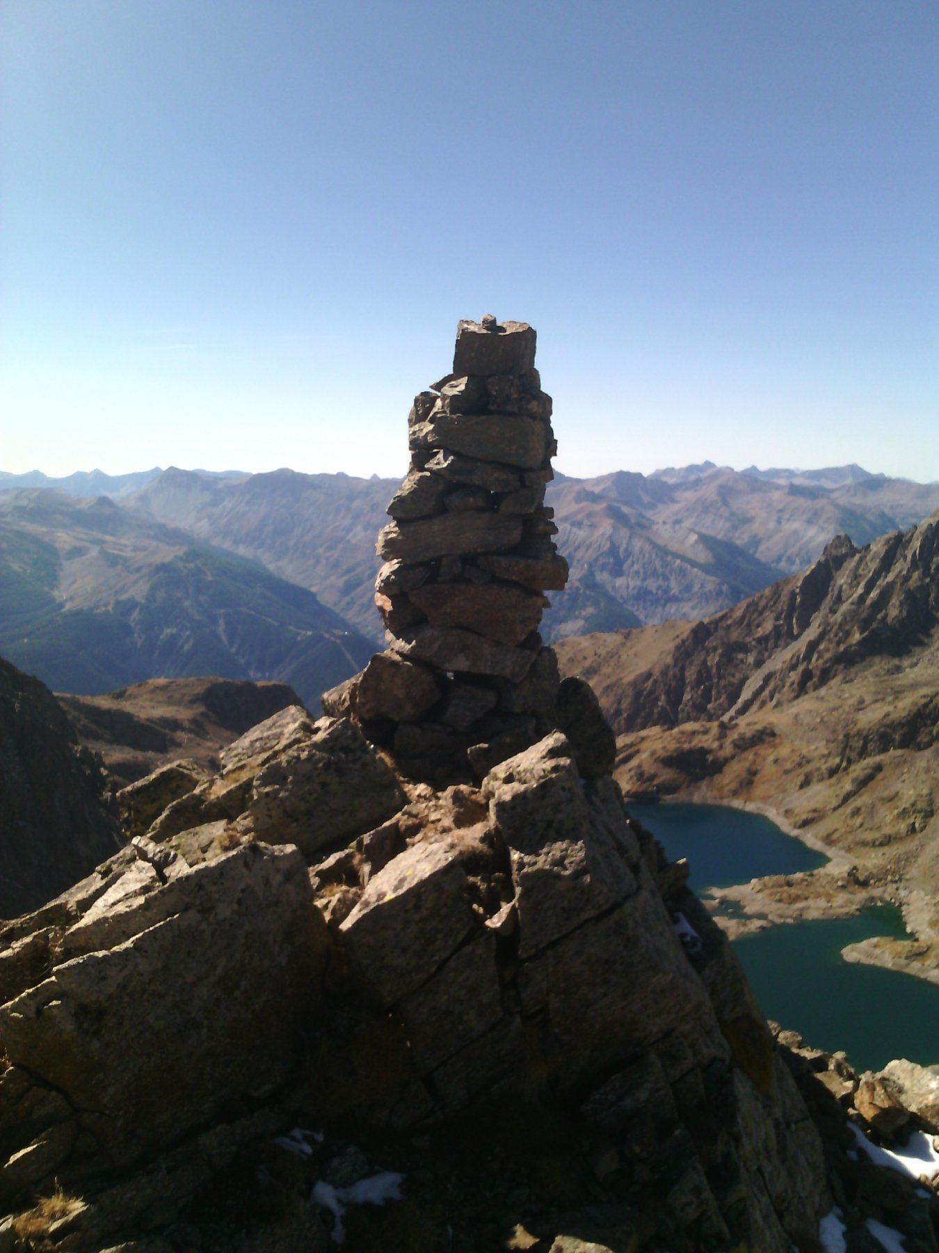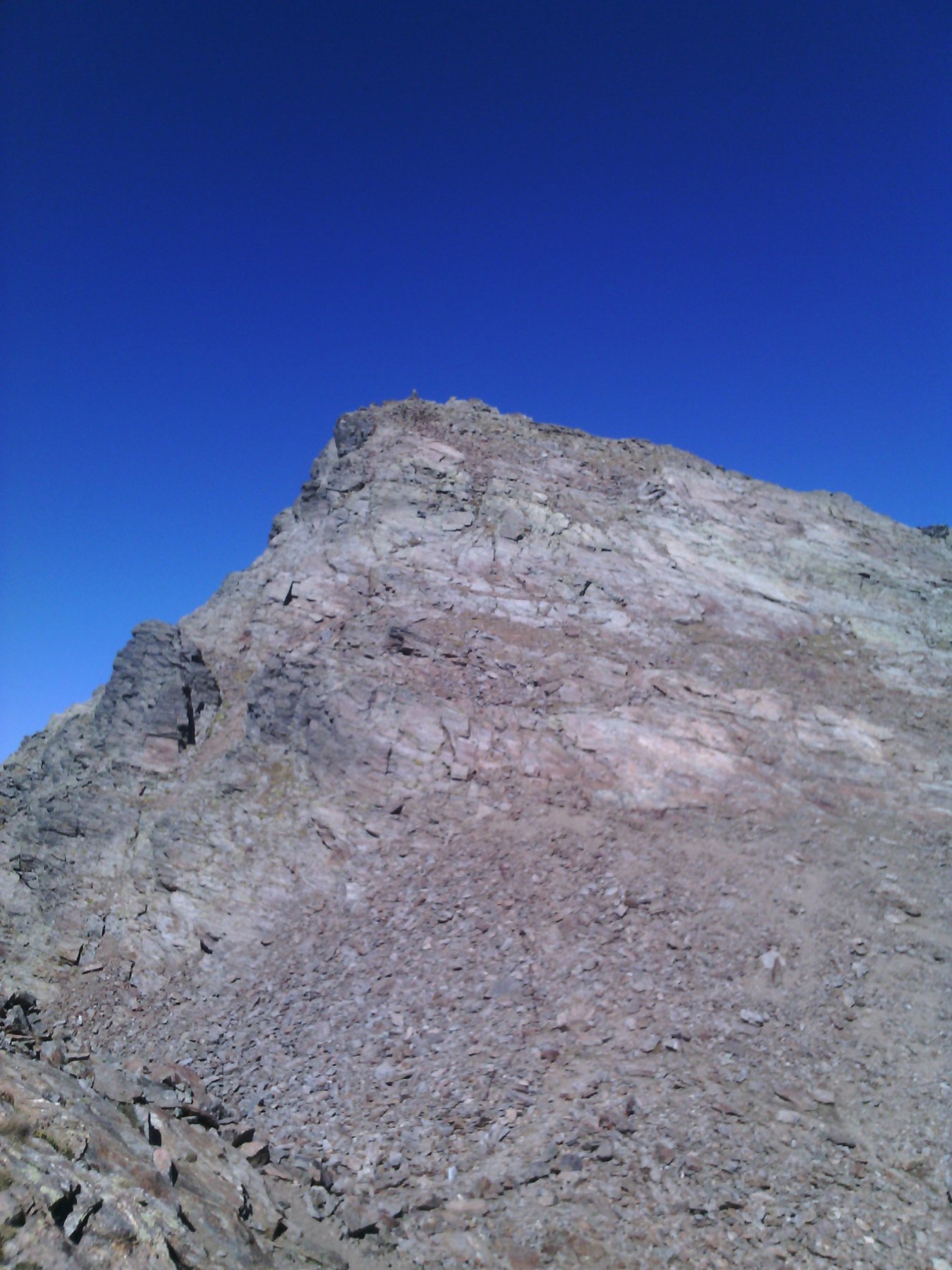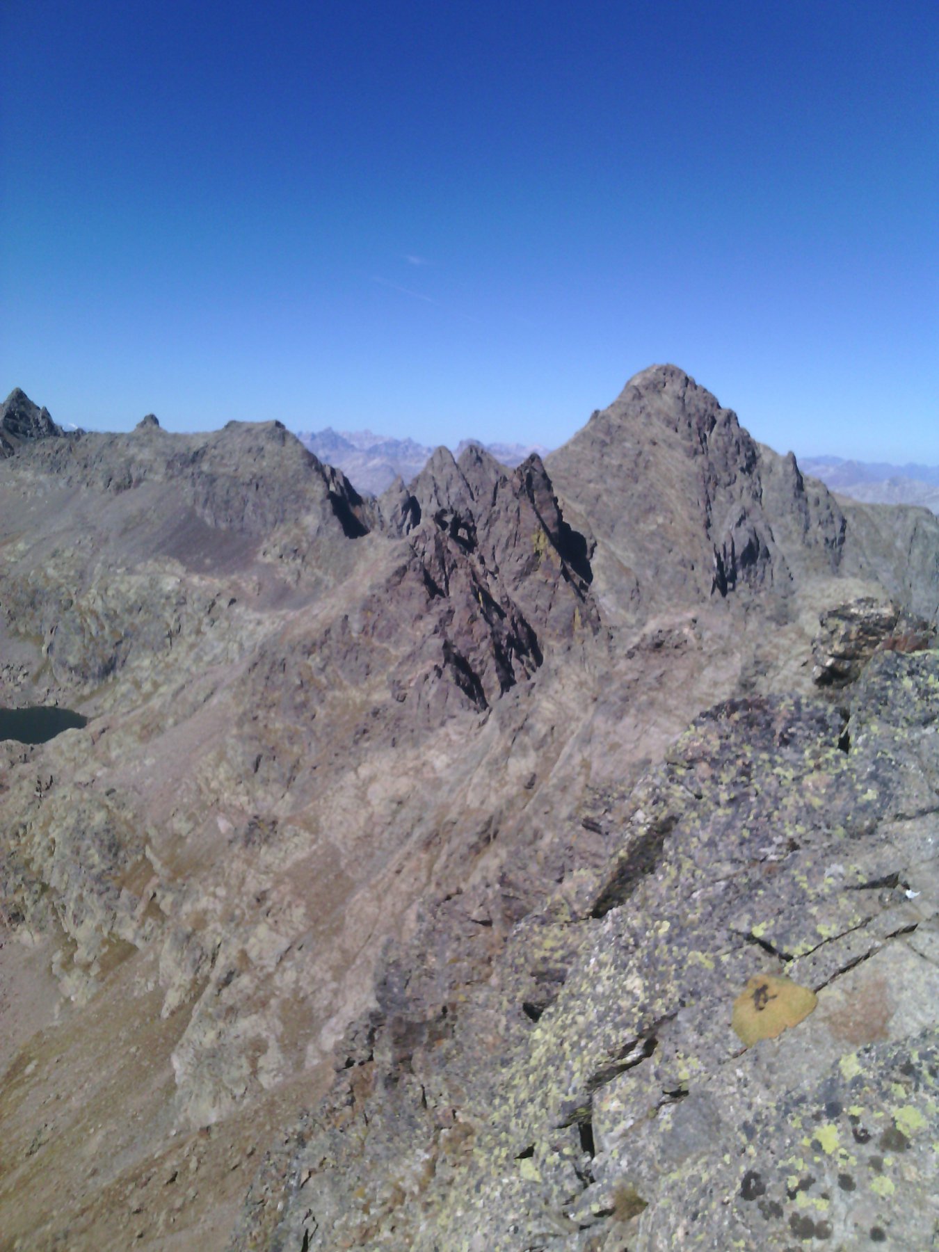 Persi pochi metri di dislivello scendendo verso il lago, si piega subito a destra iniziando una salita un po’ faticosa su detriti e pietre di piccole dimensioni. Va trascurato il bivio che subito si incontra per la Cima di Corborant continuando in ascesa lungo una specie di cengione, per poi affrontare il breve pendio che conduce al Passo d’Ischiator (piccolo ricovero diroccato). Da questo si piega subito sulla destra quasi in prossimità della cresta della Cima Sud, risalendo seguendo gli ometti tra alcune placche rocciose abbastanza gradinate alternate a tratti di sfasciumi, sino a raggiungere il grosso ometto in cima.