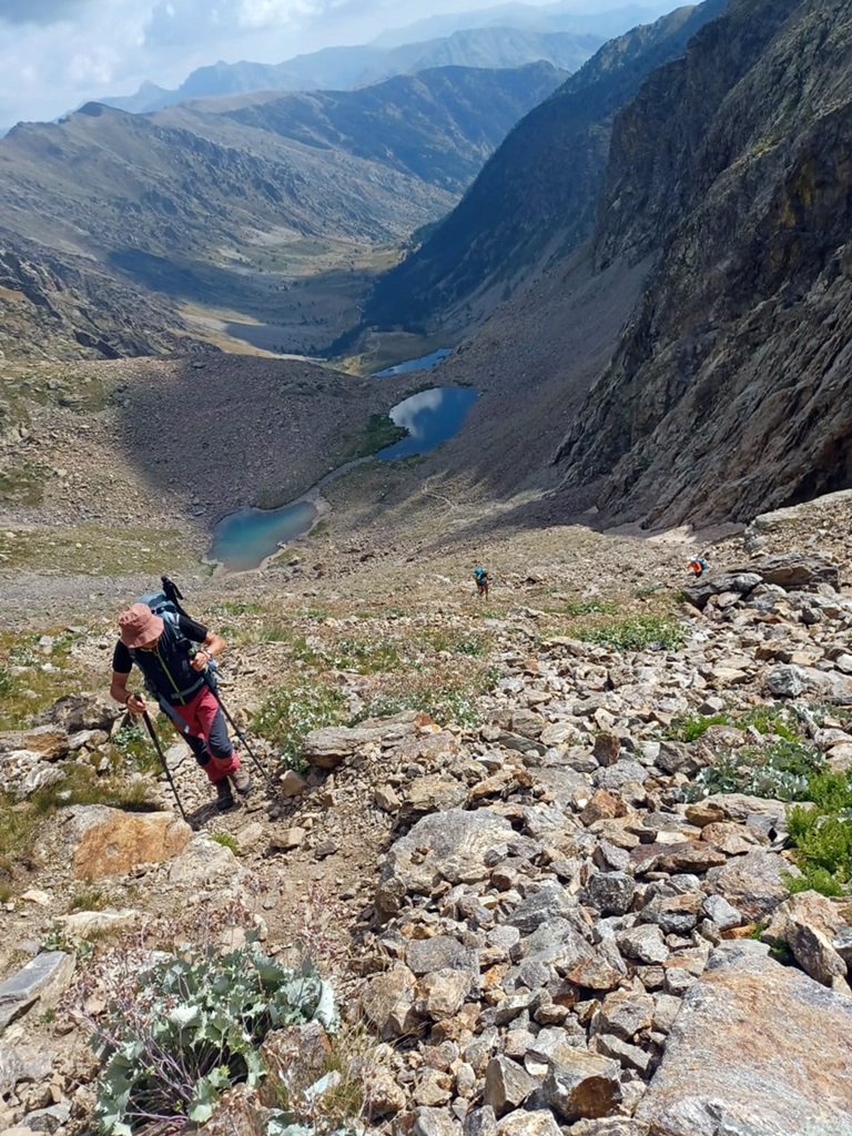 Discesa dall’itinerario di salita, oppure con svariate possibilità di traversate (di più giorni) o verso il Refuge des Rabuons, oppure verso il Passo di Rostagno scendendo al Rifugio Zanotti, oppure Su San Bernolfo attraverso il Passo di Laroussa.