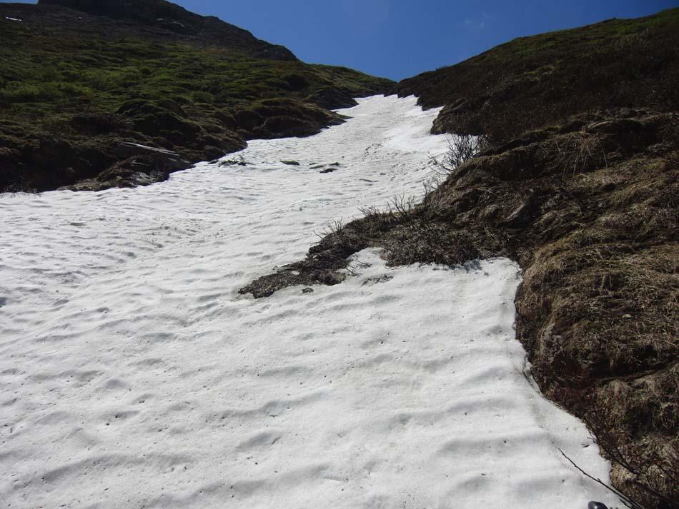 Percorso due terzi di cresta a piedi; il mio socio stava male e mi ha abbandonato. Questo però per me è stata un colpo di fortuna; grazie al buon segnale del cell l’ho avvisato ed è venuto a recuperarmi al Pont St. Charles dove una trentina di metri sopra avevo terminato una splendida sciata su neve perfetta.