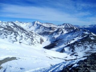 La salita è ancora resa poco sicura da dei nevai presenti sui pendii ripidi e la neve è molle.