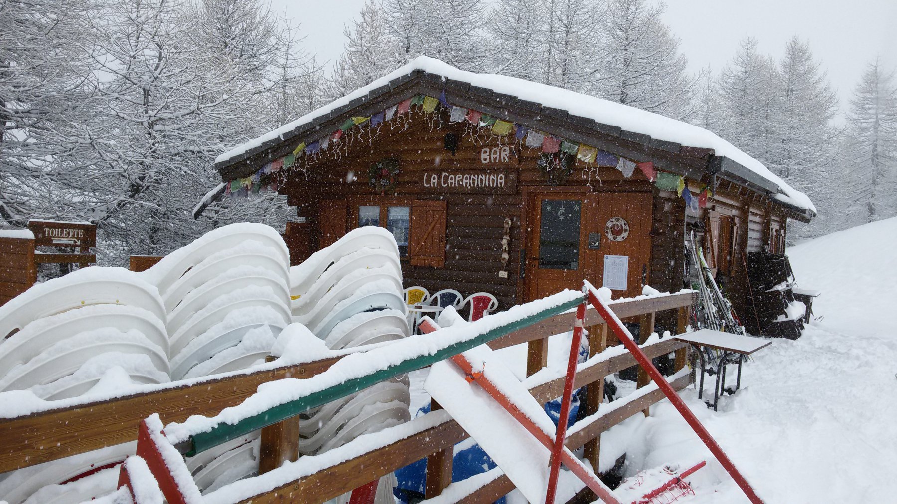 Partiti sotto una fitta nevicata dagli impianti Jaffreau 1350 per salire in cima abbiamo raggiunto l’arrivo dell’ultimo skylift 2450 e siamo velocemente scesi alla Capannina a causa fitta nebbia e tanta neve.