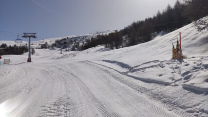 Innevamento ai bacini al limite ma dai 2000 in su non ricordo questa copertura. Prima discesina lato ovest alle 11.30, seconda discesa completa alle 12.30. Neve portante fino a 2400 circa, poi meglio stare sulle piste, ma…