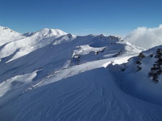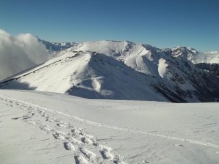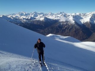 per godersi la salita bisogna non fare troppo caso alle piste, ma sopratutto all’arroganza di qualche pistaiolo maleducato..che disprezza la presenza di chi si affatica in salita per conquistarsi una vetta..e di sicuro non stiamo di certo in mezzo ad una pista..non ci tengo a farmi falciare!…nessun problema..disprezzo reciproco !!!