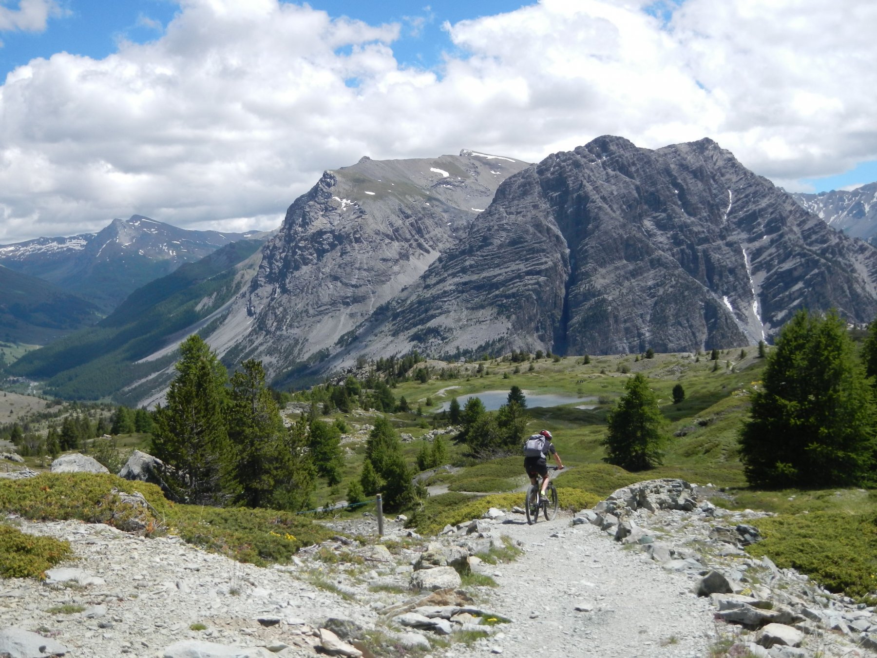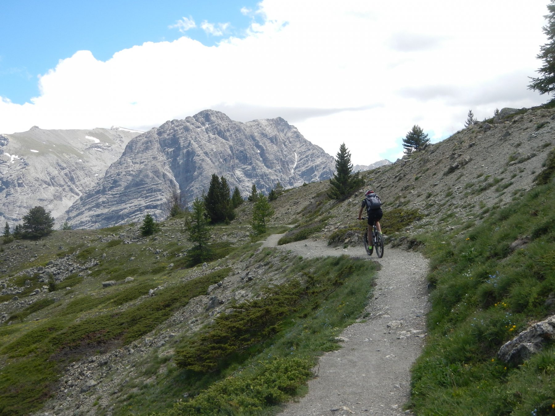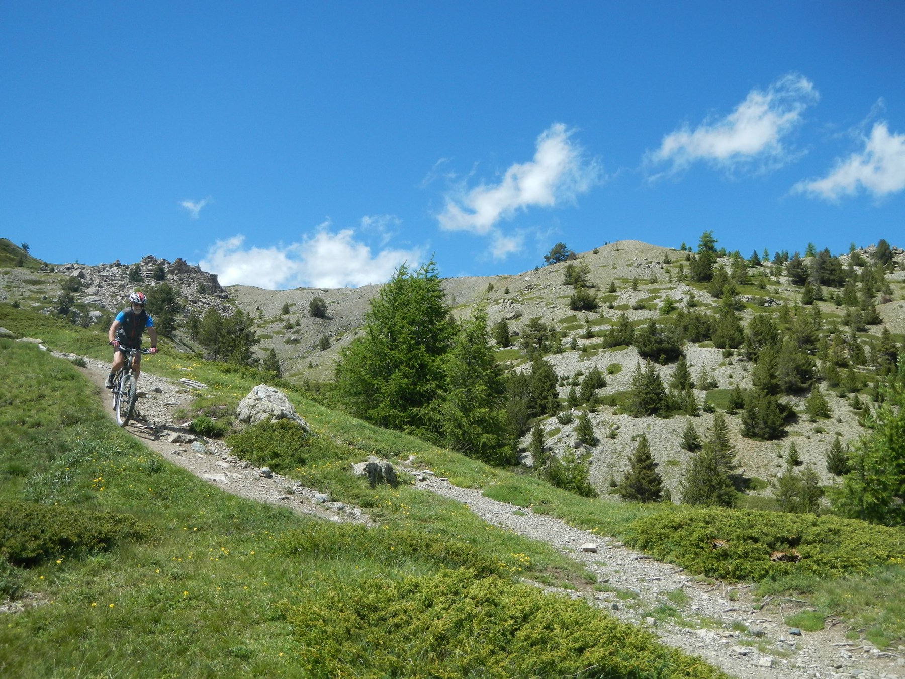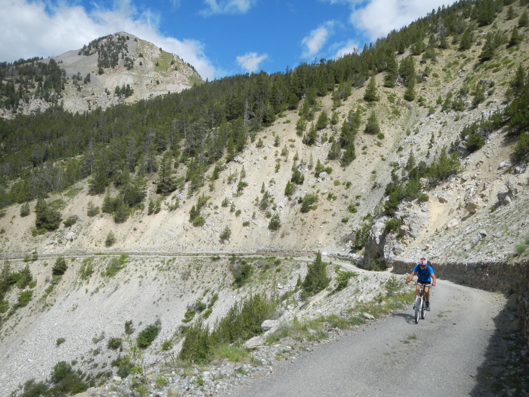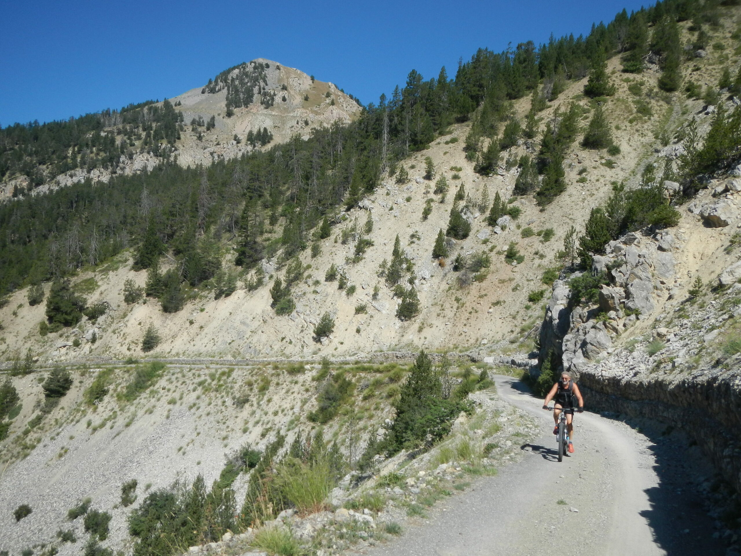 si ritorna al colle ci si sposta verso il gondran e si prosegue sulle strade delle piste. Giunti al fondo della sterrata si incrocia la strada del bois del sestrieres che lo taglia a mezza costa per poi scendere su briançon evitando la statale. ora si scende su percorso evidente fino a tornare sulla strada dell’Izoard che ci riporta al punto iniziale.