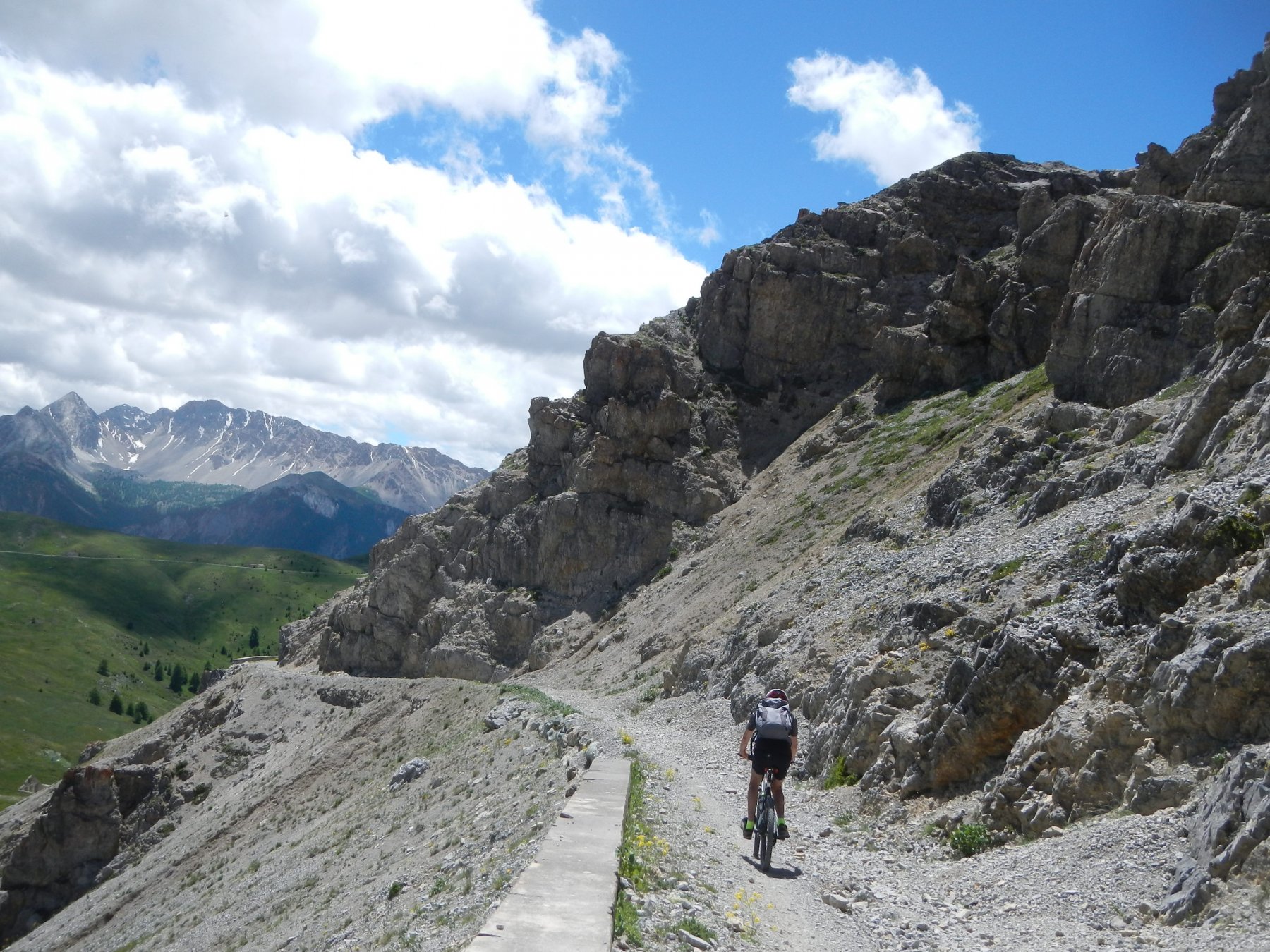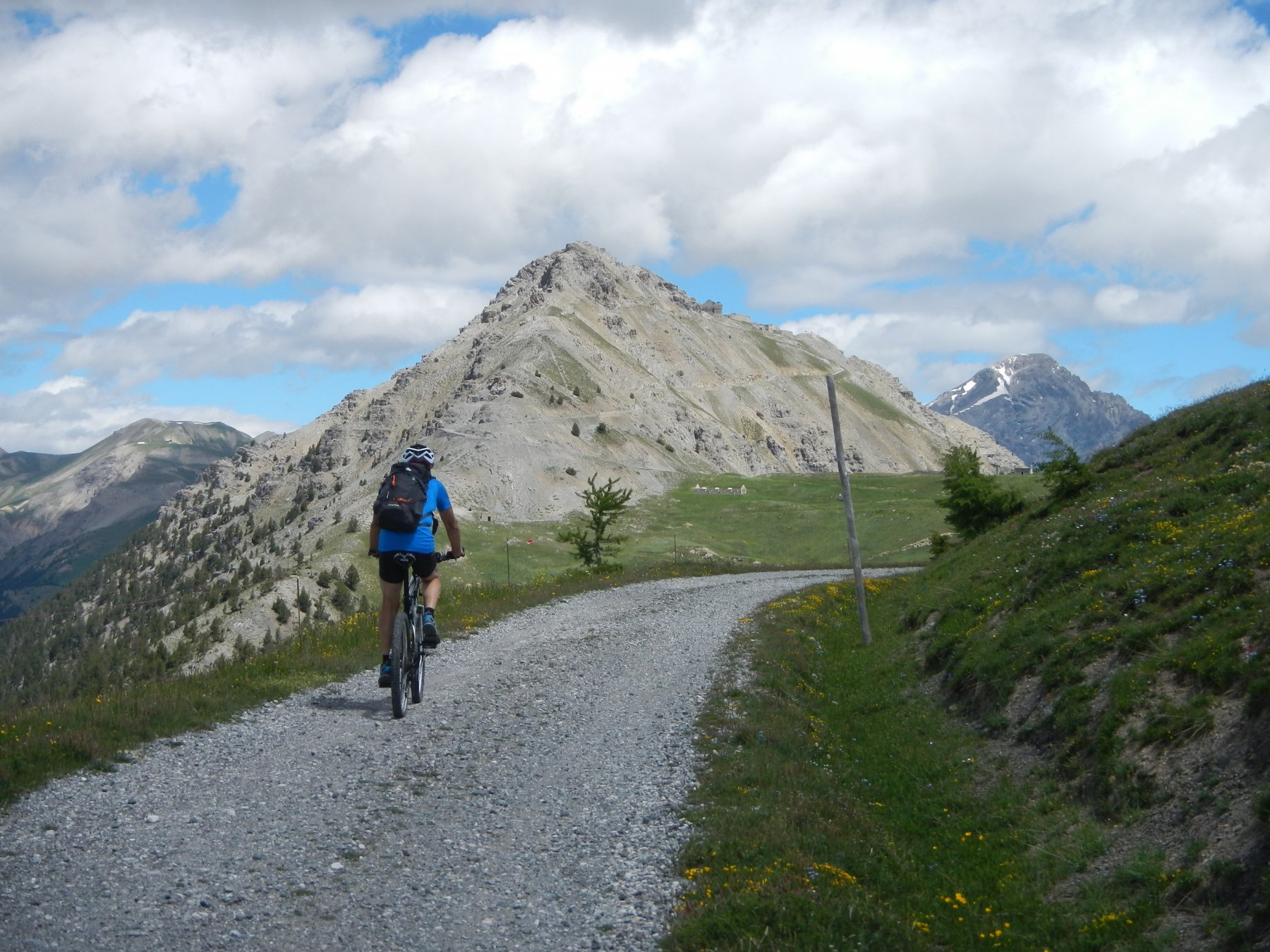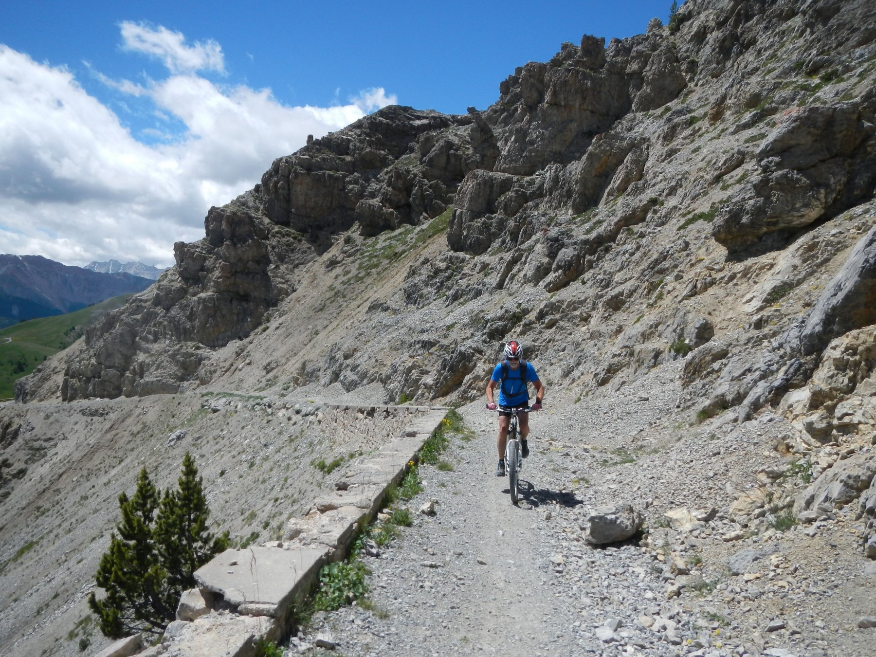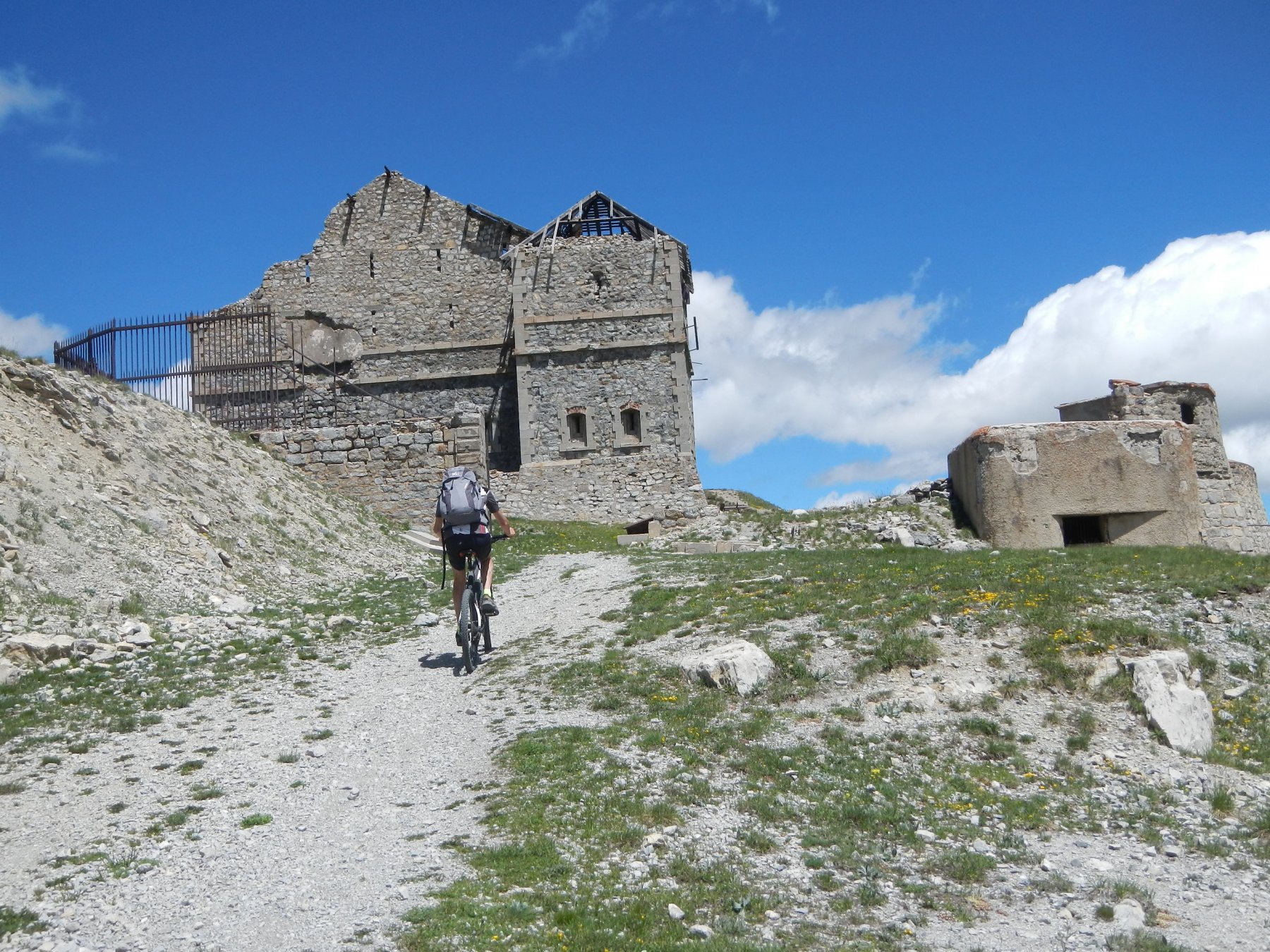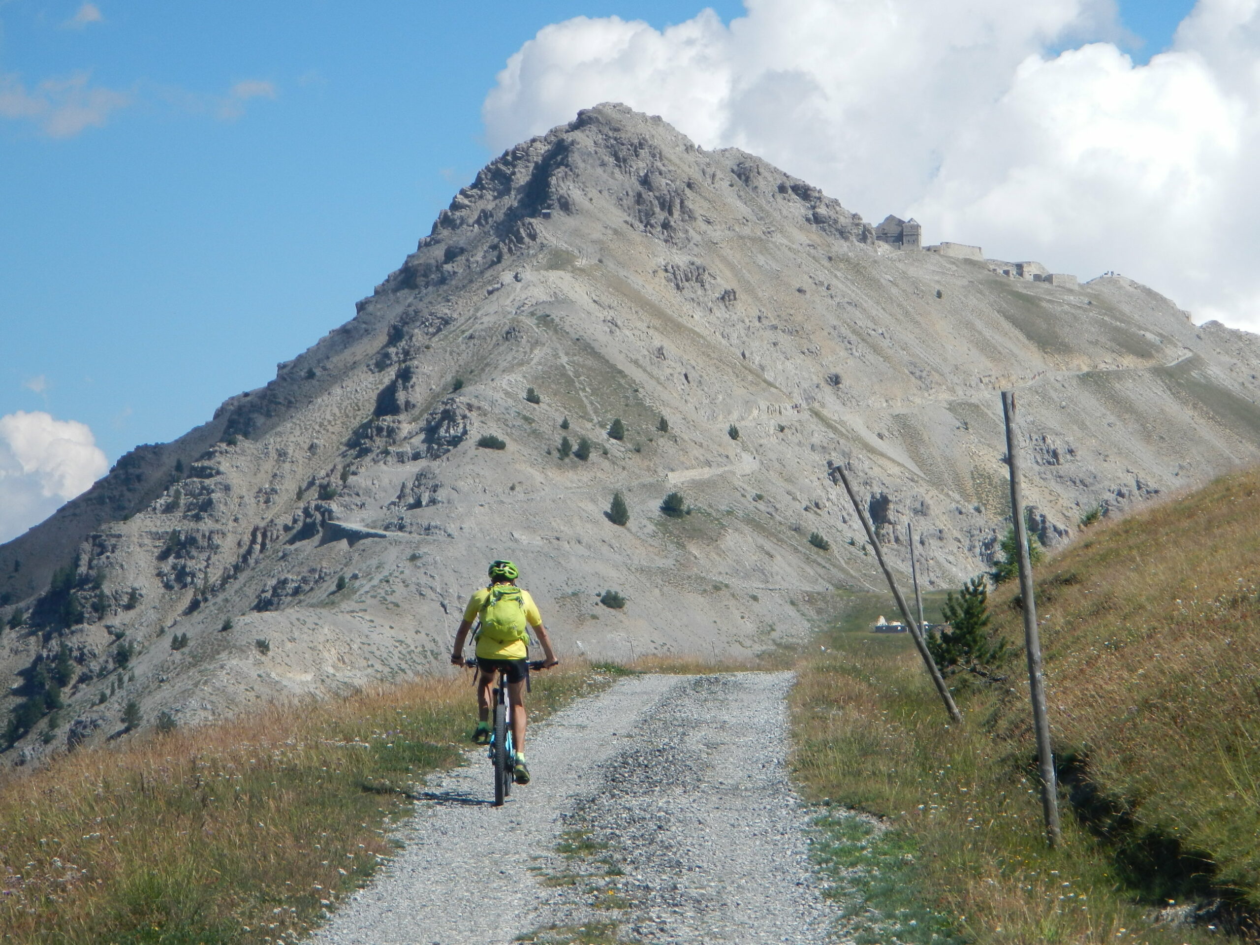 Ora senza possibilita di errore si sale sulla strada asfaltata fino al colle . Si prosegue su strada sterrata inizialmente in piano poi si prende lo chemin du janus dopo 1,5 km si arriva al forte.questo é il tratto piu duro su sterrata con ghiaione infido.