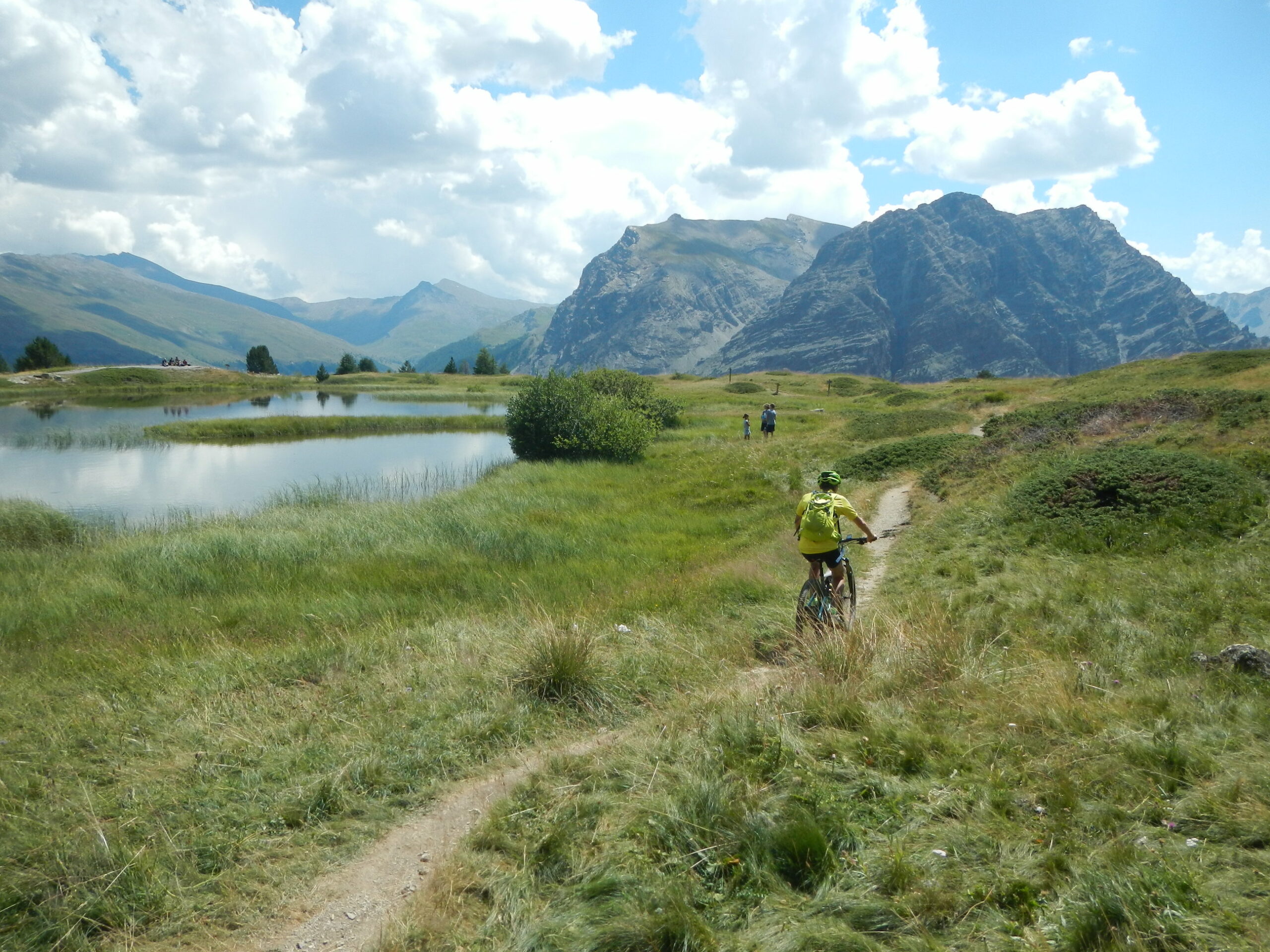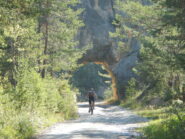 Superato il lago ed un piacevole tratto a mezzacosta, un breve tratto del sentiero, più tecnico e sostenuto, richiede l’accompagnamento della mtb.