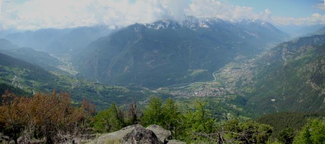 Partiti dall’area di parcheggio in prossimità delle case di Petit Rhun (1317mt) passando per Sant Grat e Amay abbiamo ravanato per trovare l’incrocio delle poderali a quota 1620 (il problema è la mancanza di indicazioni e in questo periodo la fitta vegetazione dei prati rende difficoltoso il seguire il sentiero avendo lo scrupolo di non danneggiarli) ma il peggio è avvenuto all’innesto a quota 1720mt dove invece di proseguire a sx abbiamo tenuto la dx e di li a poco ci siamo trovati al cospetto della Valle di Gressoney senza più sentiero. Spinti dalla voglia di scarpinare abbiamo deciso di salire la costa di sx e in pochissimo ci siamo trovati ad attraversare una ripida pietraia e a proseguire a quattro zampe in canalino che faticosamente ha guadagnato i 150mt ripidi che portano alle Cime Botta. Uno spettacolo. Ma solo da qui abbiamo realizzato che per salire al Jetire occorre ridiscendere il pendio a nord e raggiungere la depressione a quota 1922mt pendio da scendere con cautela e attenzione usando tutti gli arti. Raggiunto il colle abbiamo risalito la costa sud del mont Jetire, questa volta su ripido ma facile sentiero sino alla cima.