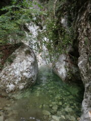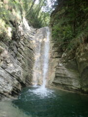 Abbiamo lasciato la macchina a Pra della Fam perchè poi avremmo concatenato il Baes (il Vione basso è interdetto in teoria), attenzione perchè si paga a ore e non c’è una tariffa giornaliera…alla fine pagheremo circa 20€ di parcheggio. Abbiamo concatenato anche la parte superiore-superiore, penso poco percorsa, con tanta calatine anonime, disarrampicate, tratti secchi e una curiosa macchina ribaltata prima di incrociare il ponticello percorso durante l’avvicinamento, dal quale siamo entrati nel tratto frequentato dai commerciali. Spettacolare! Bei tuffi, tante corde fisse molto utili, calate spettacolari, davvero una bella forra. Devo dire più lunga di quella che mi aspettavo, ma comunque di soddisfazione. Ancoraggi ovviamente perfetti come mi aspetto in una forra così frequentata, portata regolare.