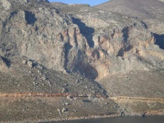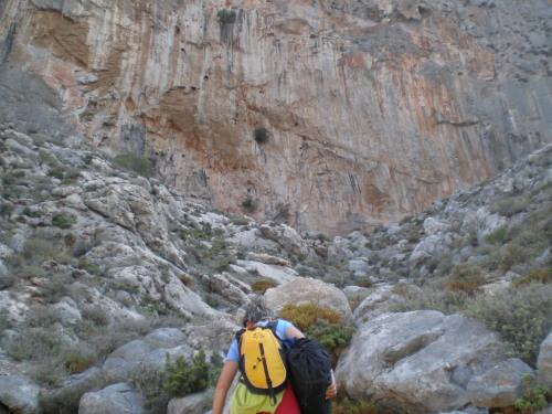 Da Masouri in direzione di Skalia lungo la strada dopo Arginonta si rintraccia l'evidente pilone bianco da cui il sentiero in dieci minuti porta alla base delle pareti.