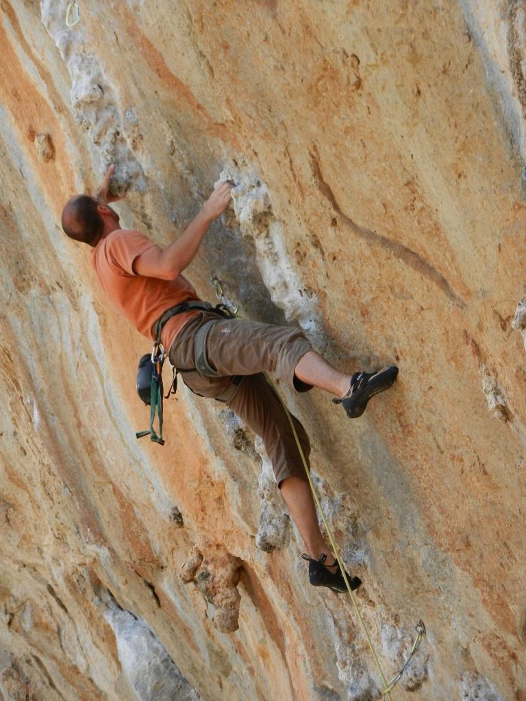 Il calcare di Arhi è davvero bello e non troppo aggressivo - fatto sta, però, che conviene coprirsi le ginocchia-.