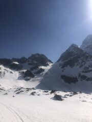 La neve è ancora buona e permette una bella sciata, noi siamo saliti abbastanza presto, siamo arrivati alla bocchetta per le 11:30/12:00 circa. Scendendo, quando siamo arrivati al pianoro, siamo stati sulla destra e siamo riusciti a non spingere. Dato 3/5 come voto perché rispetto alle condizioni “normali” della Val Formazza c’è veramente poca neve.