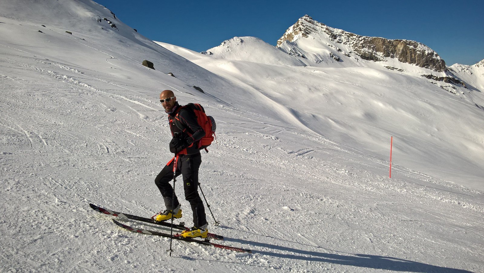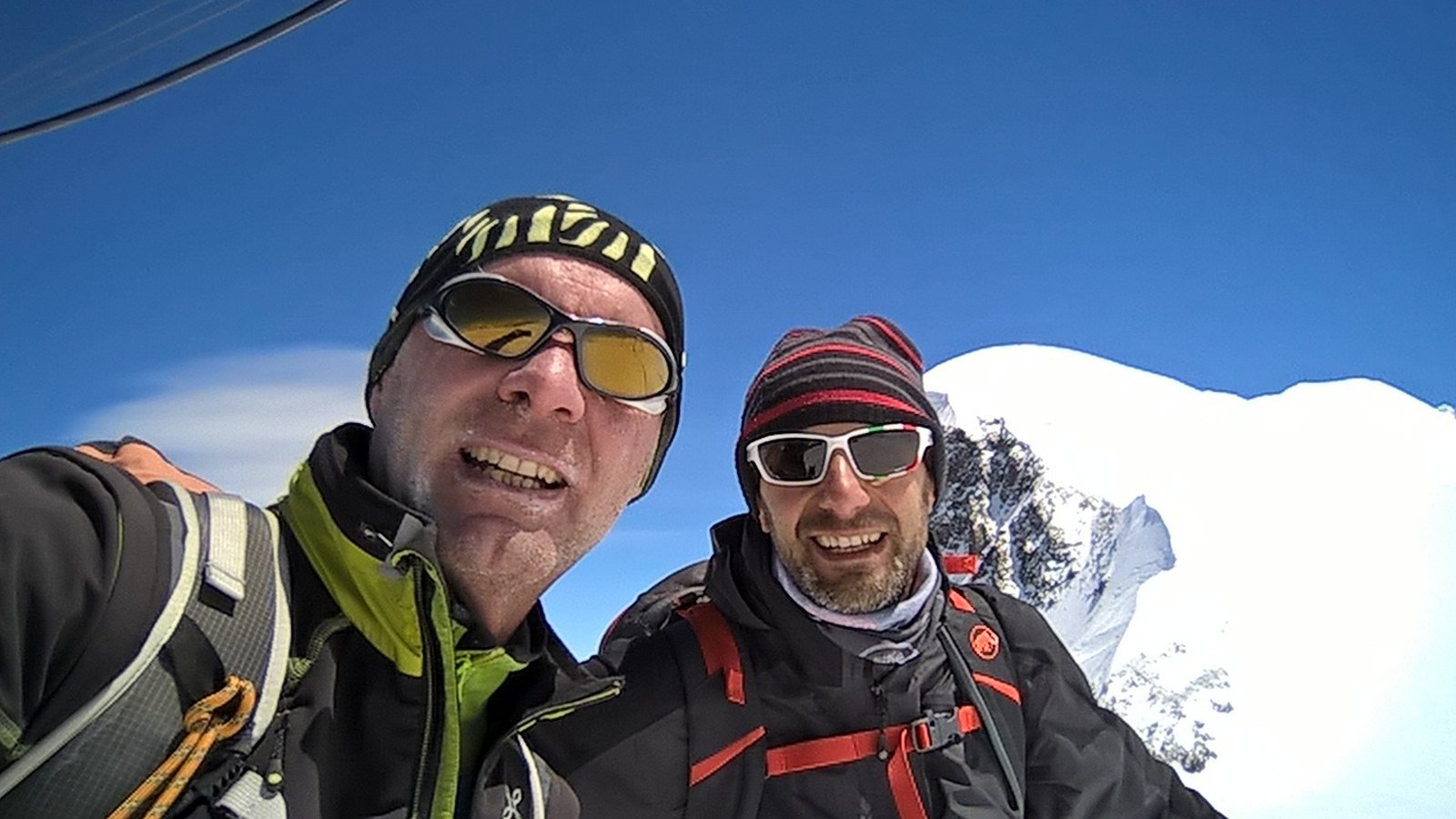 Si parte ancora sci ai piedi dal park, inizialmente su pista poi ci si deve obbligatoriamente spostare, indifferentemente sulla destra o sulla sinistra, perché hanno sbancato un lungo tratto di strada, neve cemento fin da subito e solo dopo Plateau è più morbida e ventata fuori dalle piste, intanto più si sale e più fa freddo e tira una bella bisa gelata, poca gente sul Breithorn e guida con cliente che ha rinunciato per freddo e vento forte.