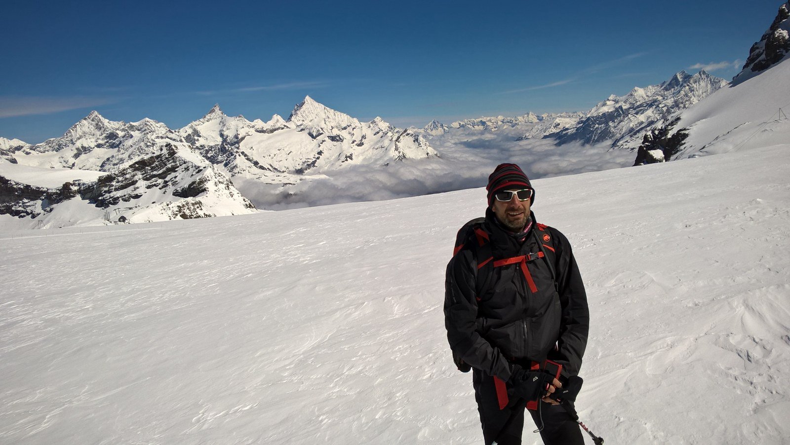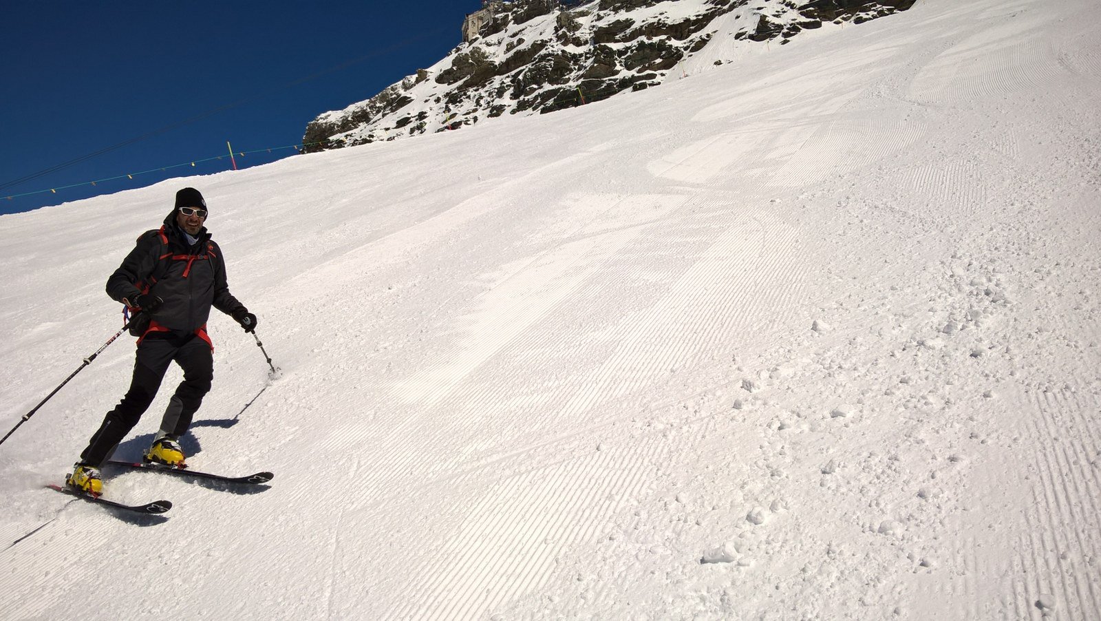 Al piccolo Cervino rapido cambio d’assetto e giù per Km di piste su neve che nel frattempo si è ammollata il giusto, dove è stata fresata dai gatti, fuori dalle piste dura come il marmo.