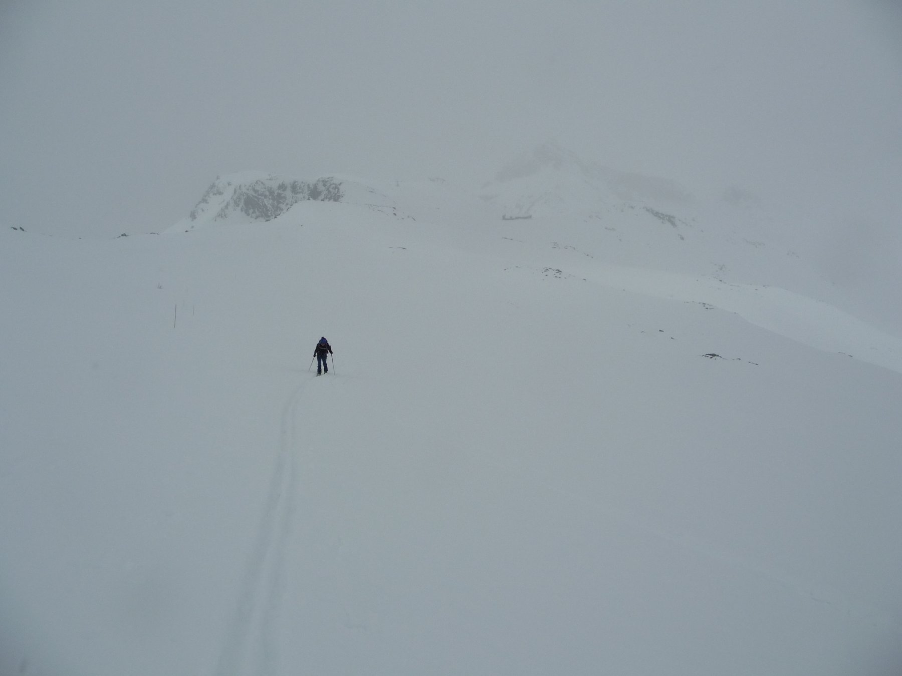 Si calzano gli sci di fianco alla macchina e neve continua su tutto l’itinerario. Stamattina partiti poco prima delle 9 con un bel sole che ci accompagna nella prima parte di salita. Poi arrivano le nuvole e la neve. Arrivati a Plateau Rosa piste svizzere oggi chiuse ma fresate. Saliti fino a 100m dall’arrivo della funivia sotto nevicata ora intensa. Discesa con scarsa visibilità ma su bella neve. Parte alta piste con neve fresca sopra e imboccato il ventina tanta neve fresca in alto divertente poi man mano che si scende sempre più pesante ma sempre sciabile. Arrivati a Cervinia la neve diventa acqua.