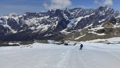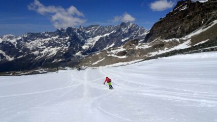 Bella gita di fine stagione con impianti chiusi . La giornata è stata calda ma non troppo ! Essendo partiti presto , 5,45 , in discesa alle 13 abbiamo trovato neve buona , in particolare scendendo in pista dal Piccolo Cervino . ma anche in basso la neve non è mai stata sfondosa