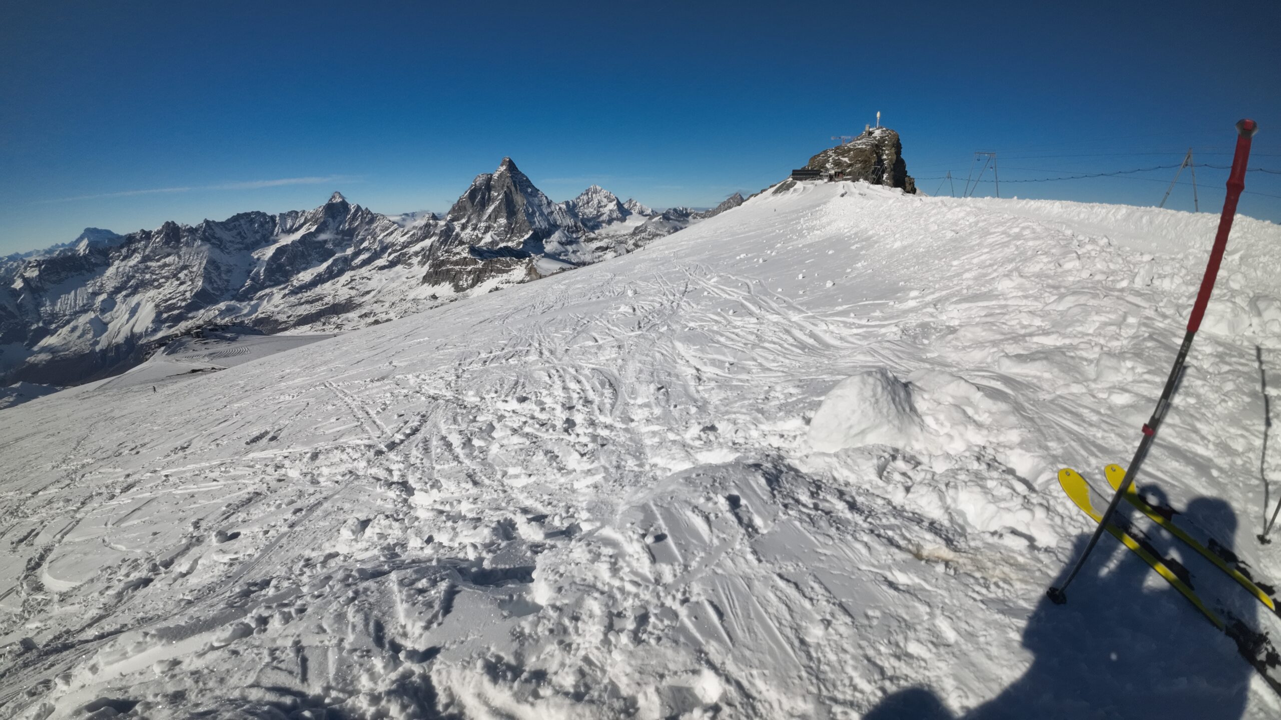 Bellissima giornata di sole..si torna a Cervinia visto che è uno dei pochi posti dove si riesce a fare qualcosa. Stavolta salito dal lato theodulo e arrivato al Klein Matterhorn..avrei voluto continuare per il breithorn, ma era già lunga così e poi mi sembrava che la sciata dal breithorn non fosse poi così entusiasmante per neve dura e ghiacciata, magari mi sbaglio!