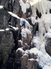 Simpatica falesia per il giorno di rientro. Poco ghiaccio quest’anno. Anche le vicine cascate “Lipton” e “Juvsoila” non sono formate. Con Bresaola60 e gli amici “Orobici” di Foppolo.