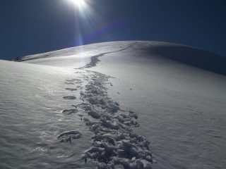neve ottima che ci ha permesso una prosecuzione particolarmente veloce e, anche in questo caso, senza la necessita’ di doversi eventualmente legare in cordata.