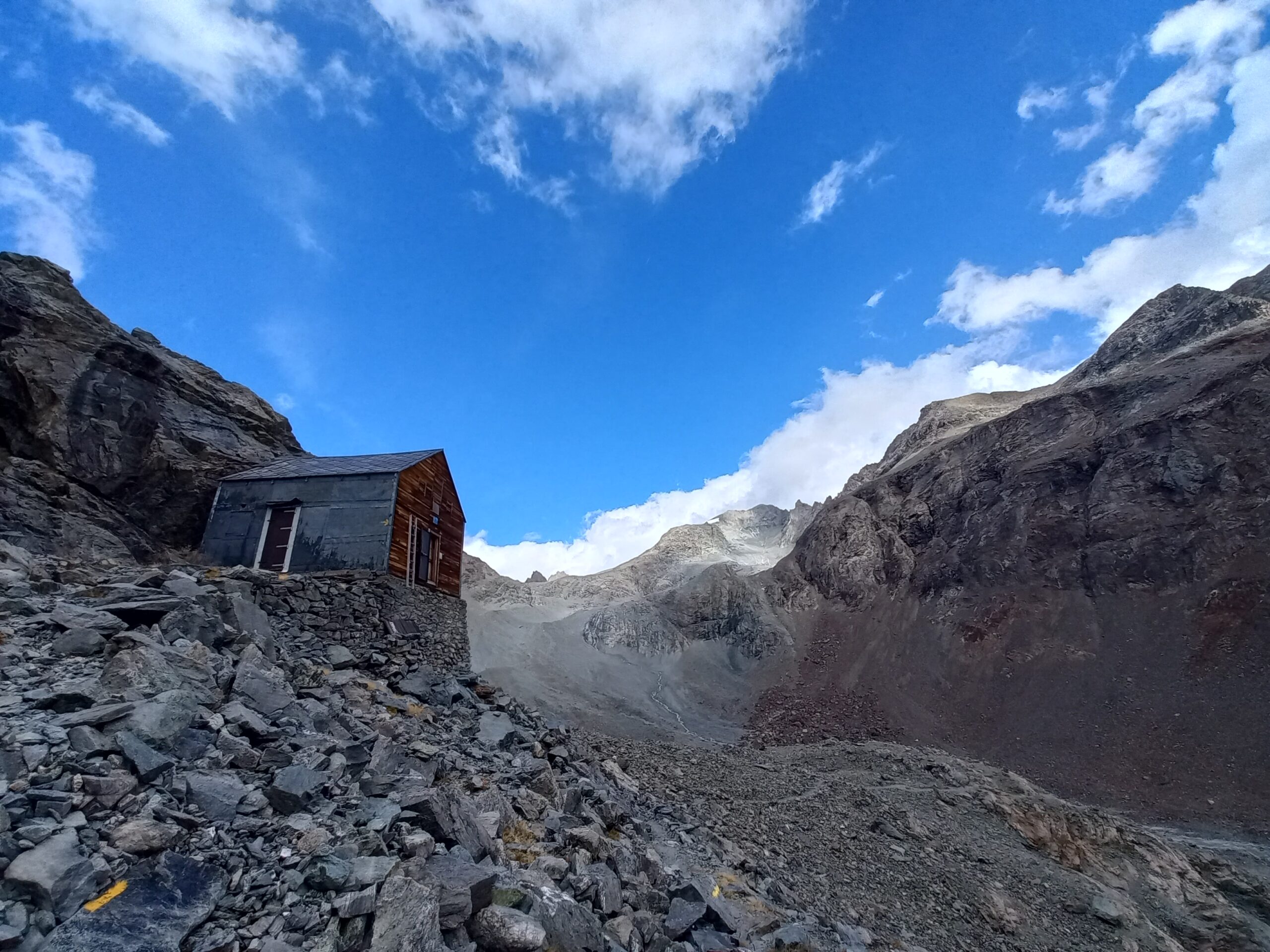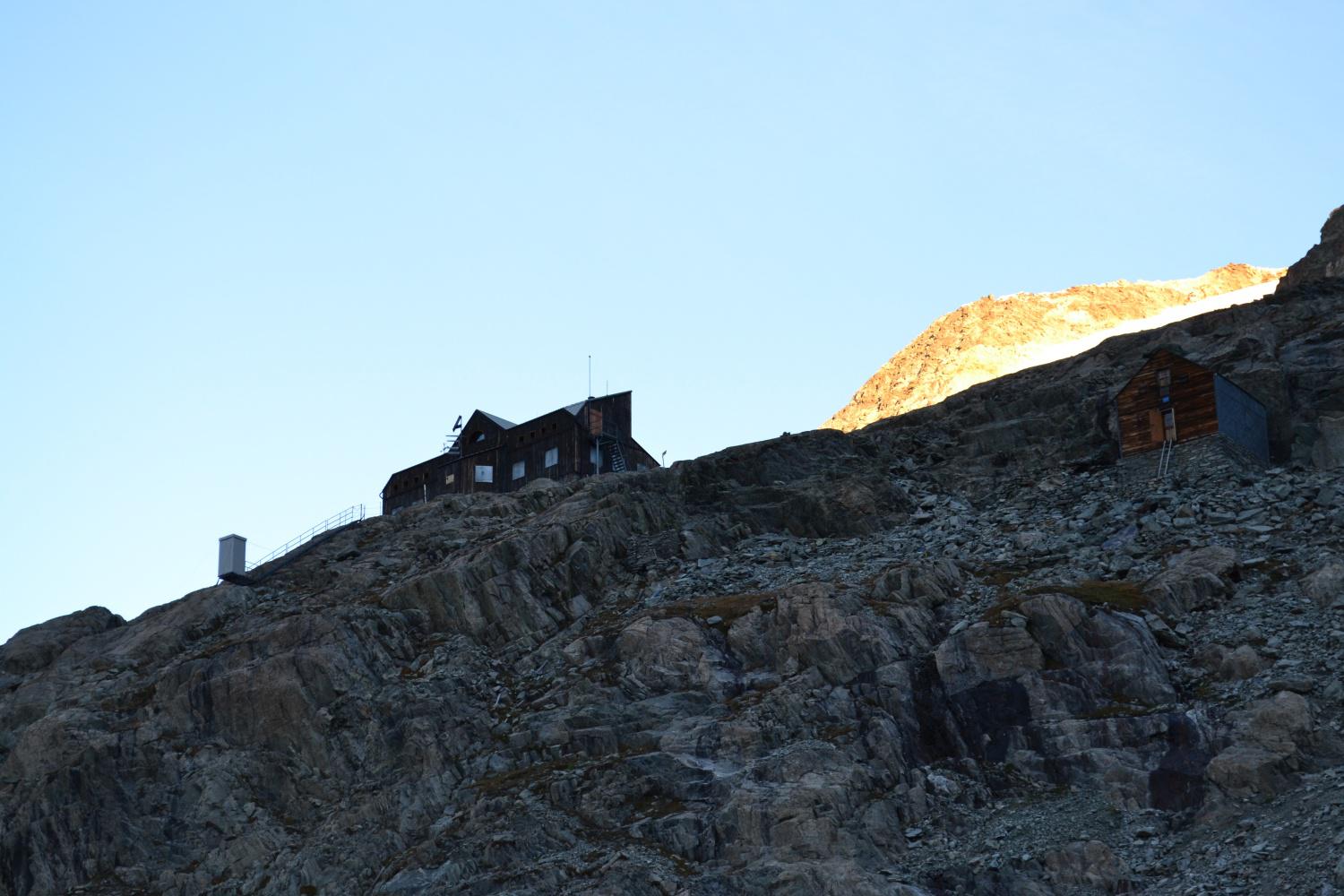 Al termine di questa balza un pianoro e un ponticello conducono sotto al Rifugio Nacamuli 2828 m, ben visibile a sinistra.