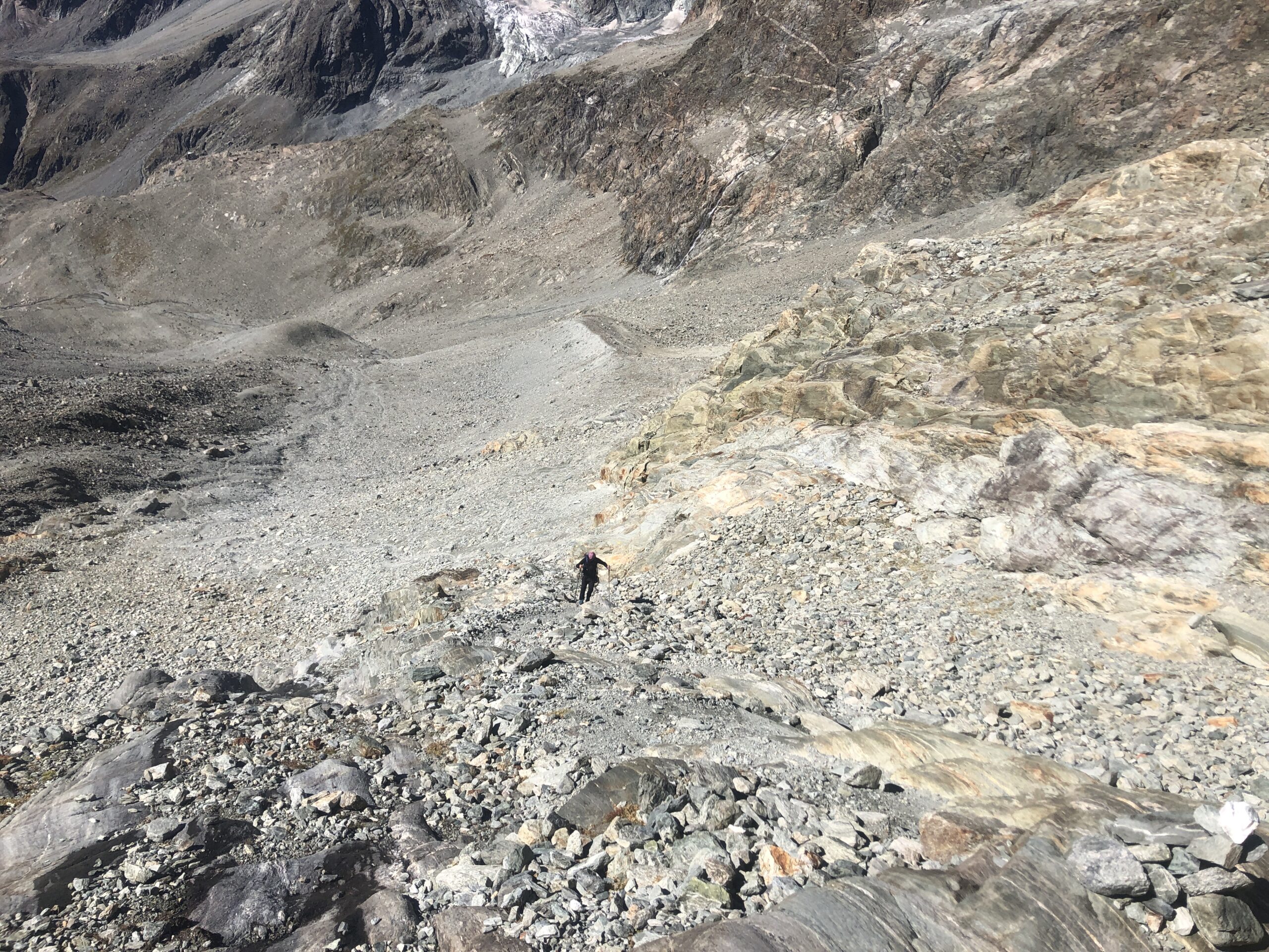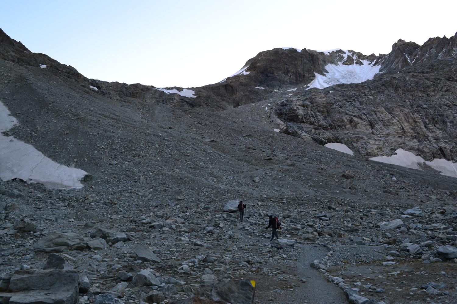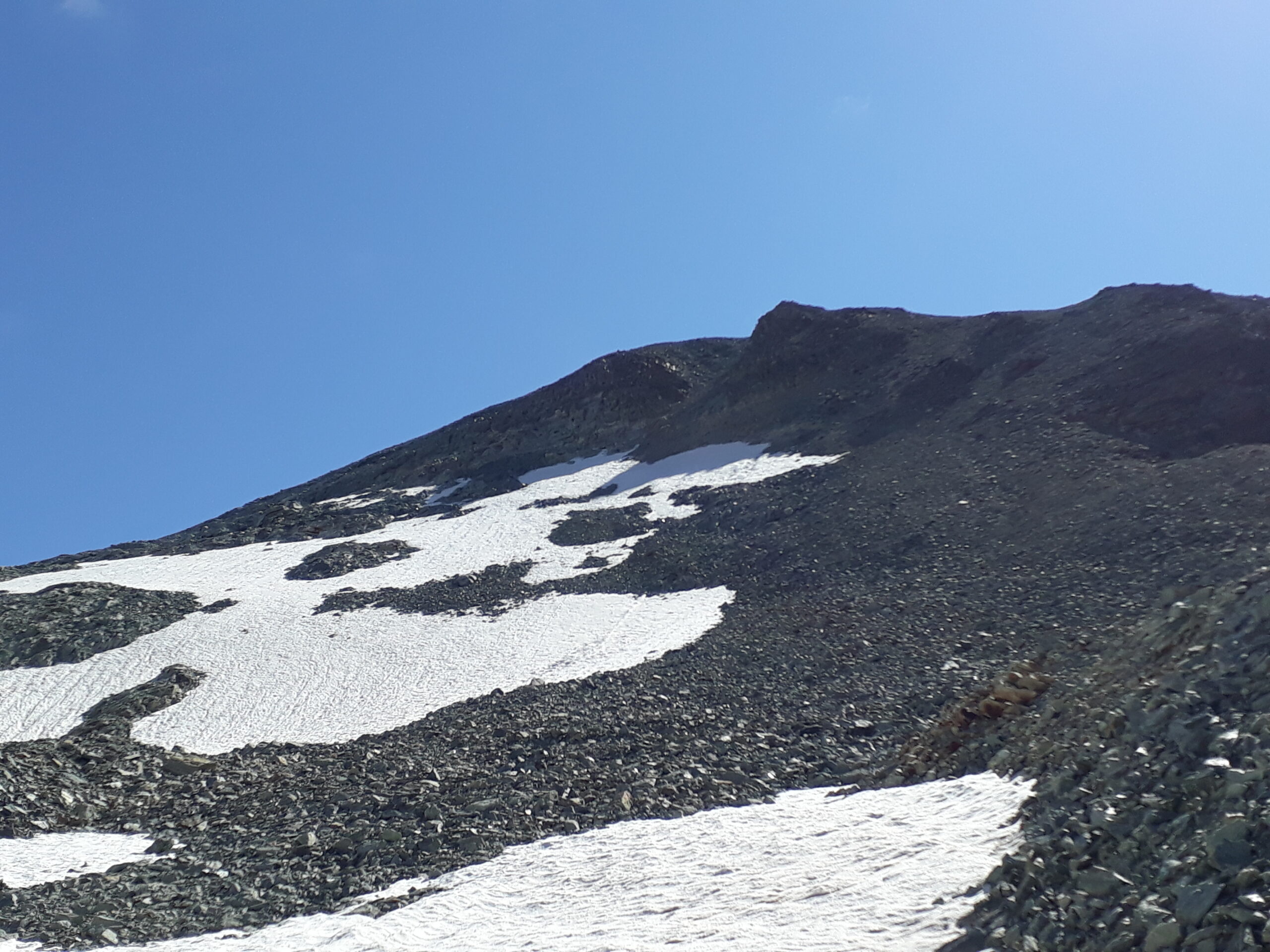 Da agosto 2022 ormai anche il crinale nevoso si può evitare restando sui detriti del versante italiano, rendendo di fatto la salita escursionistica (specie a fine stagione)