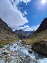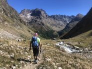 Si percorre il vallone inizialmente sulla sinistra del torrente, per poi attraversarlo su un ponte di legno nei pressi di un alpeggio diroccato. Dopo un falsopiano si inizia a salire sul costone di pietrame ed erba per poi giungere ad una strettoia con passaggio caratteristico a fianco ad un masso, dopo il quale si apre un ampio vallone erboso solcato da numerosi rivoli.