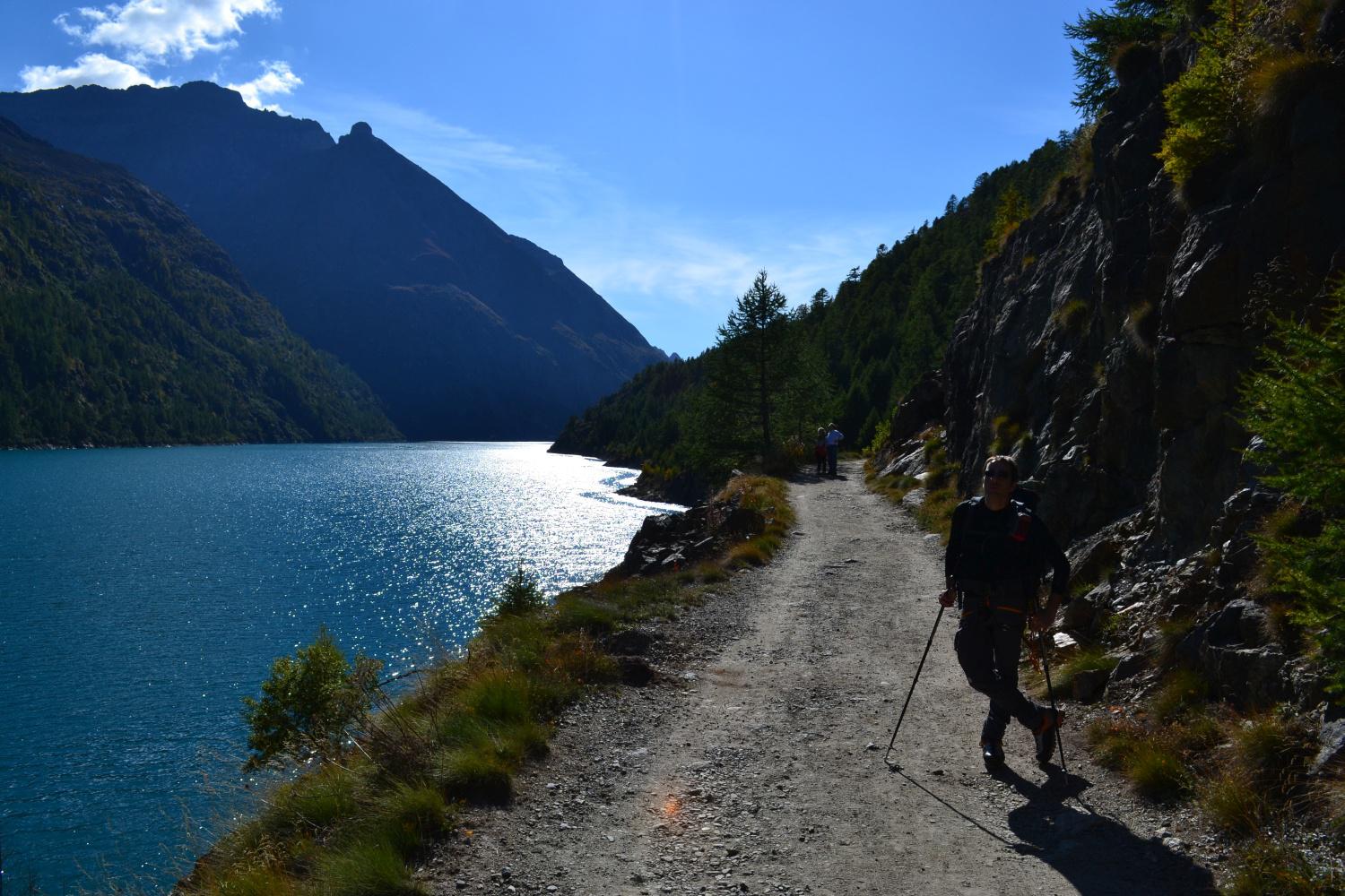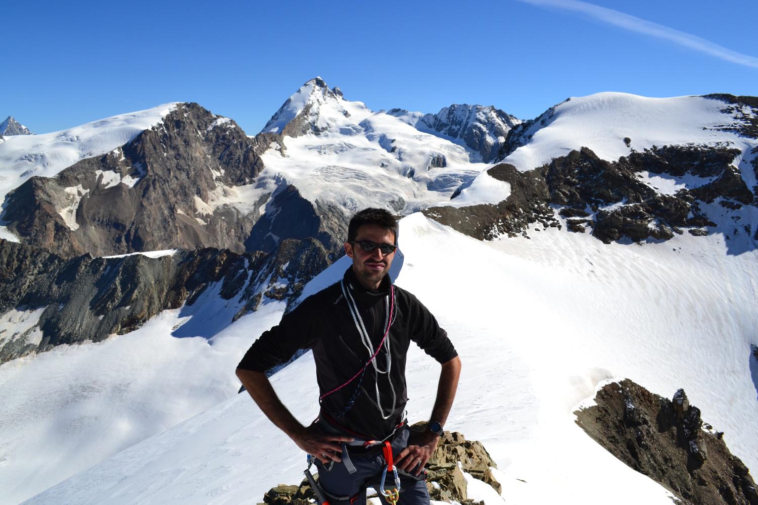 Da qui risaliamo l’evidente pendio nevoso/glaciale della Kurz, il quale non presenta difficoltà particolari fino alla crestina finale che, anche a causa nella neve ventata e del gran caldo di oggi, abbiamo percorso con molta prudenza fino in vetta. Vista spettacolare sulla Dent d’Hérens e totale sensazione di isolamento con nessun insediamento umano in vista. Il ritorno sembra non finire mai, soprattutto dal rifugio al Lago di Place-Moulin, dove abbiamo seguito la lunga sterrata del Prarayer fino alla diga.