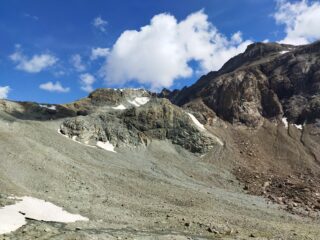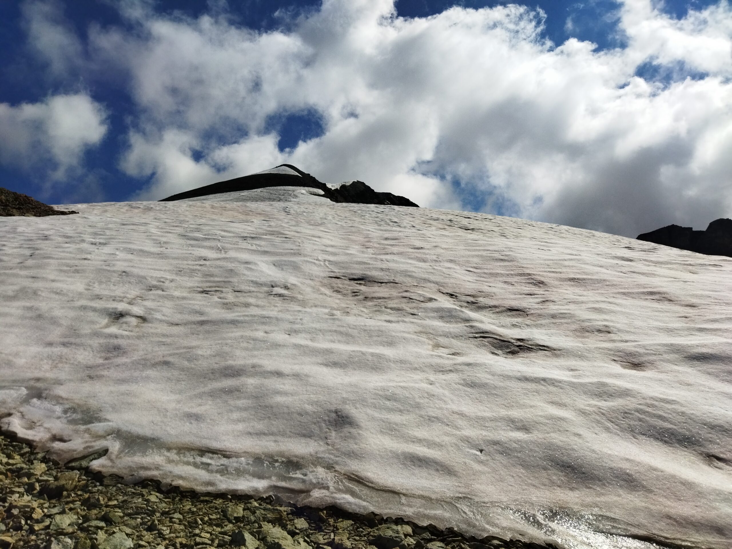 Condizioni attualmente secchissime; utili i ramponi solo per il piccolo nevaio che precede la cima, e per la cresta sommitale. La spalla di sfasciumi prima dell’antecima è un po’ disagevole ma ci sono tracce di passaggio.