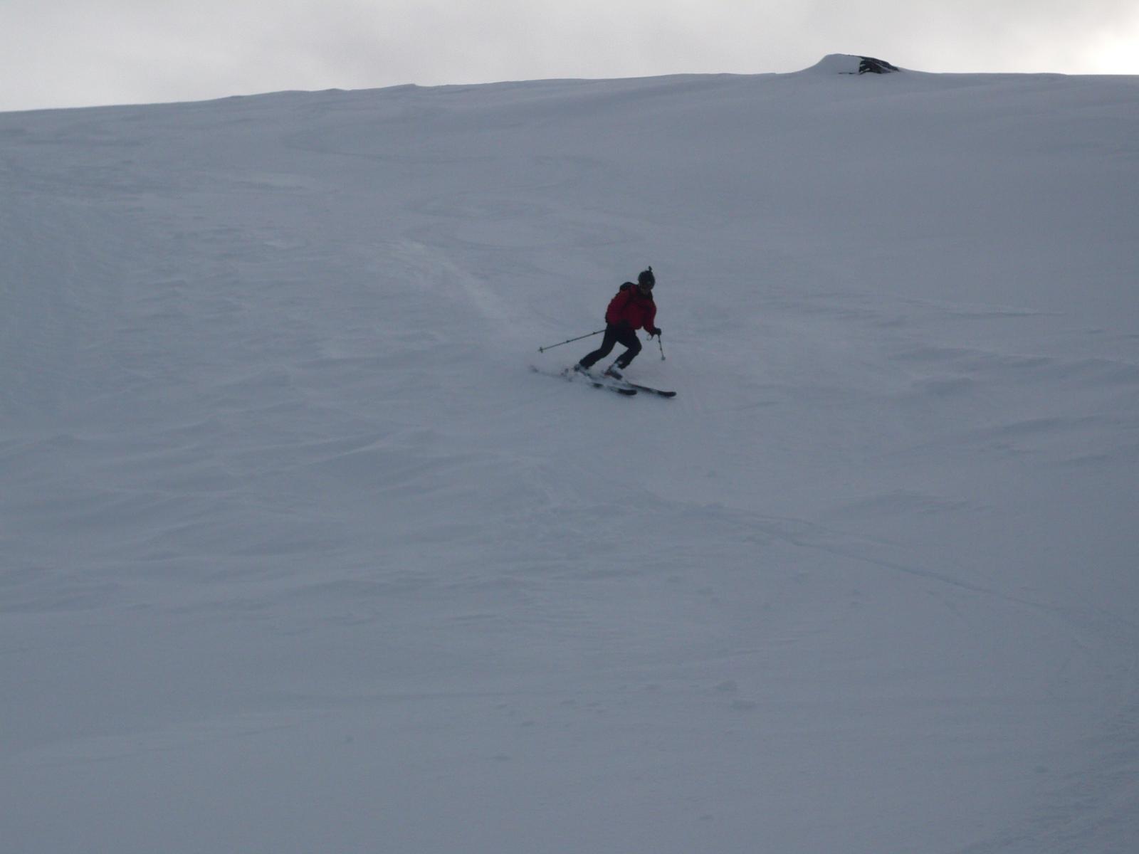 Bella esperienza in ambiente selvaggio e scarsamente frequentato, anche le case di Husjord paiono disabitate da mesi. La prima parte della gita risulta alquanto “robbosa”: arbusti, cespugli, fiumiciattoli poco agevoli in queste condizioni di innevamento. La parte superiore tuttavia, ci appaga con una divertente cresta verso le cime, un incredibile panorama sui fiordi e un eccellente firn nella prima parte della discesa. Purtroppo le temperature primaverili hanno condizionato negativamente la qualità della neve nella parte inferiore. Il paesaggio e le emozioni dell’esplorazione non sono intaccate dal lungo e faticoso avvicinamento. Buona gita per chi vuole sacrificare un po’ di tempo all’esplorazione di valli incontaminate e l’opportunità di una seconda discesa( forse)…
