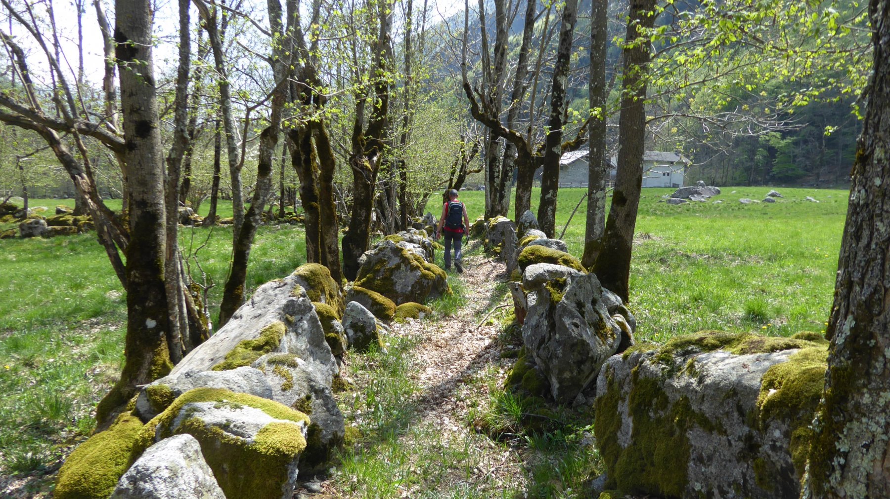 Si passa tra le case salendo a Sauderi, a fianco di una grande casa interamente ristrutturata si segue il sentiero segnato che prima costeggia il rio a destra poi sui 1130 m passa a sinistra e sale ripido nel bosco sempre ben visibile. Giunti oltre i 1800 m merita fare una piccola deviazione a sinistra, arrivando alla Bocchetta del Frate 1883 m con bella vista sulla Guglia del Frate.