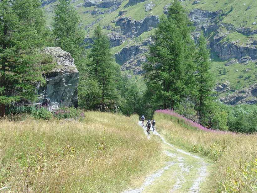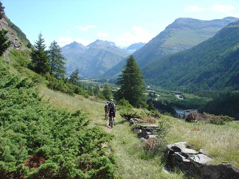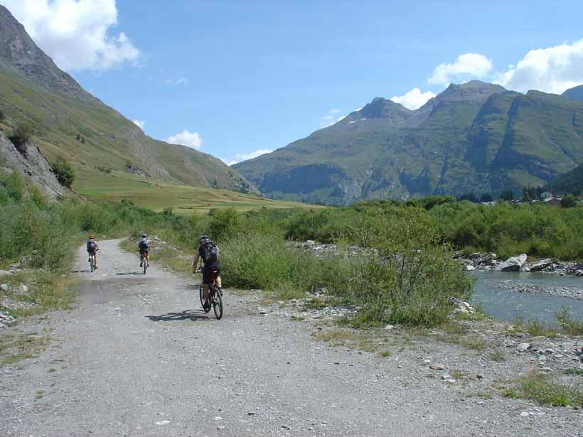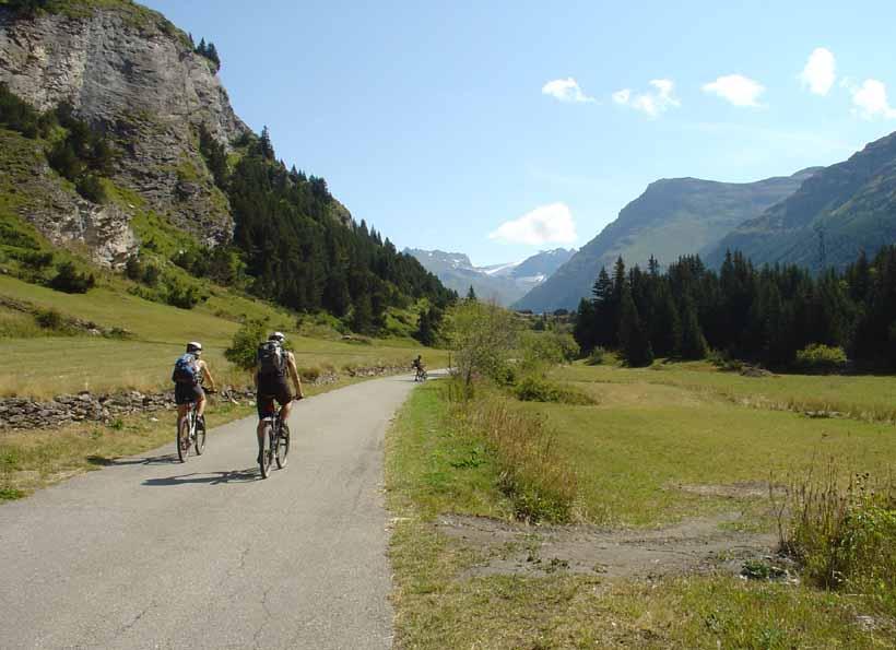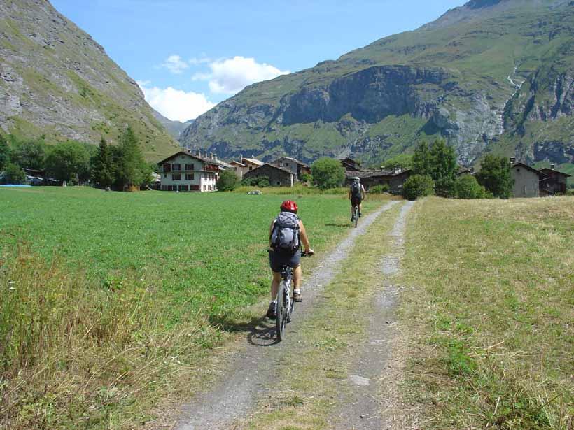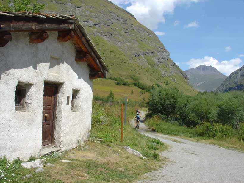 Andata. Salire sulla strada del Colle Iseran (route nationale D902) che ha una pendenza sostenuta ma regolare, superare alcuni chalets e raggiungere Prè Clos (dove termina la salita), uscire dalla strada principale ed imboccare una stradina (asfaltata) a sinistra che porta a Le Collet (Col de la Madeleine q. 1.752 – cappella); iniziare la discesa e dopo pochi metri imboccare a sinistra un sentiero (GR5) che in discesa (tratto un pò tecnico)ritorna sulla route nationale e ne percorre per circa 300 metri la sponda sullo stesso lato dopodichè si imbocca a sinistra una sterrata in piano che passa a La Chalp, Chapelle St. Maurice e sempre su ottimo fondo porta direttamente a Bessans. Appena raggiunto Bessans m. 1.705 continuare sulla sterrata pianeggiante che costeggia la sponda destra idrografica dell’Arc fino a giungere a Le Villaron (bellissimi chalets); attraversare il paesino (fontana) scendere di poco raggiungendo in fondo alla discesa la Chapelle St. Bernard ed imboccare la sterrata a sinistra. Proseguire passando al Rochers Chateau (sito protetto)dopo il quale segue una breve salita di un dosso su sentiero difficilmente pedalabile, seguita da una breve discesa e da una bella sterrata pianeggiante che conduce direttamente a Bonneval Sur Arc m. 1790.