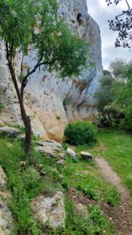 Parcheggiare la macchina a fianco strada e salire per il sentiero chiuso da un cancello (richiuderlo) e puntare dritti alla falesia (5 min)