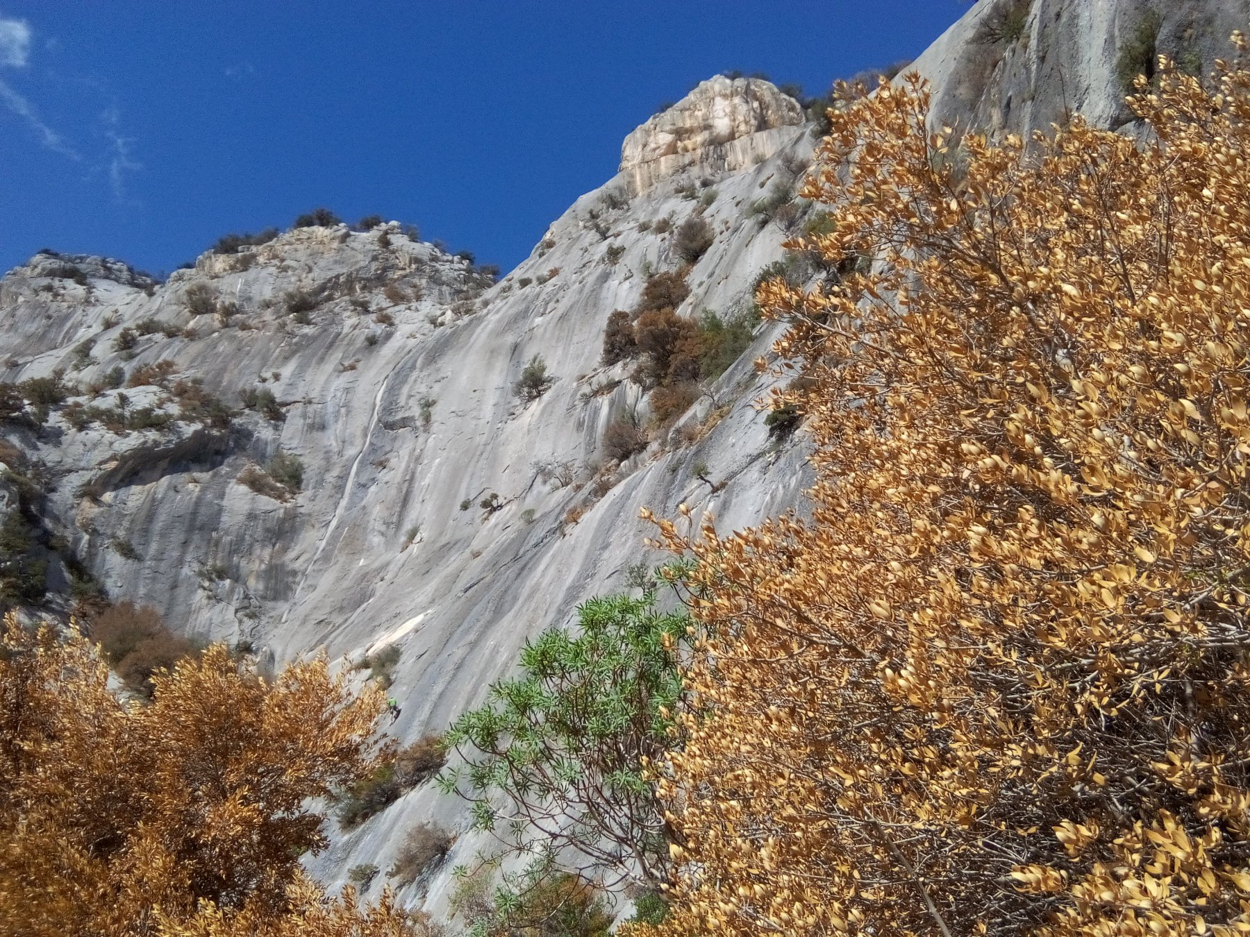 Il numero di vie e di settori e il fatto non vi siano nomi scritti alla base rende a volte laboriosa la ricerca. I settori vanno in ombra a secondo delle esposizioni e in genere si riesce a scalare tutto il giorno senza cuocersi, con temperature "normali".