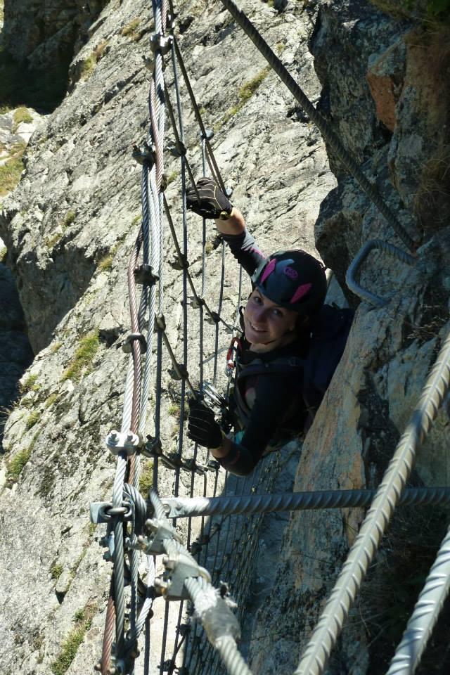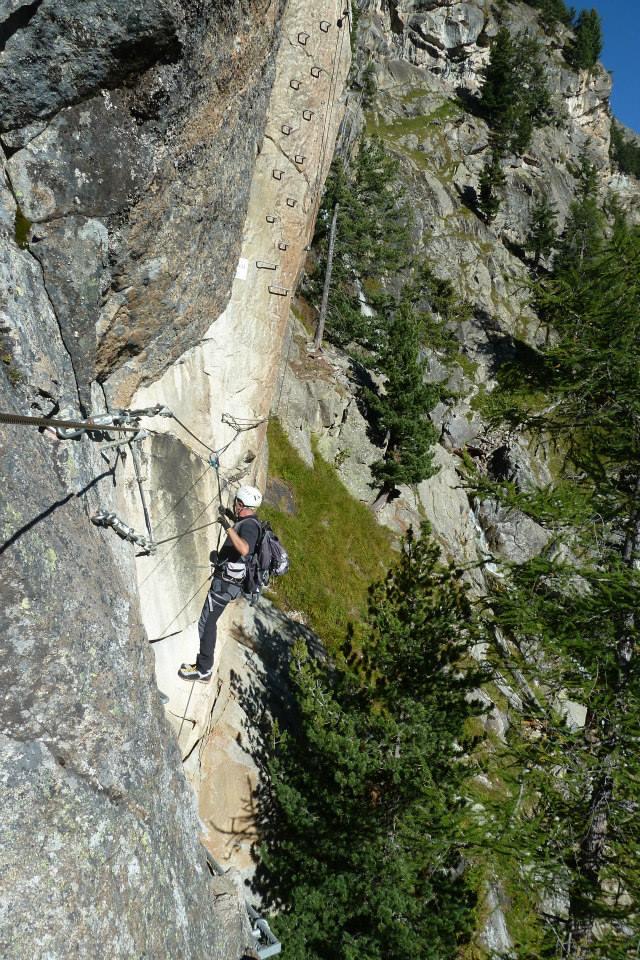 La ferrata si sviluppa lungo delle placche compatte alla destra orografica di una cascata, poco dopo Pontresina, in direzione del Passo del Bernina. Il dislivello è di 270 mt. Per una descrizione più dettagliata: http://www.vieferrate.it/ferrataresgia.htm